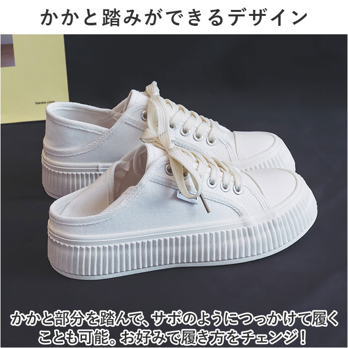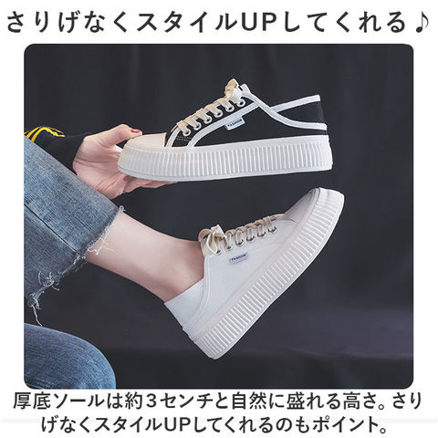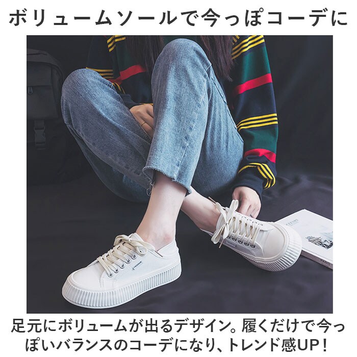 | 商品説明 | ボリュームソールでトレンド感UP☆シンプルだから使いやすい!厚底スニーカーが登場。【ボリュームソールで今っぽコーデに】足元にボリュームが出るデザイン。履くだけで今っぽいバランスのコーデになり、トレンド感UP!【ナチュラル&シンプルで使いやすい】シンプルなので、幅広いコーデにマッチし使いやすい!ナチュラルなキャンバス生地がおしゃれ☆【かかと踏みができるデザイン】かかと部分を踏んで、サボのようにつっかけて履くことも可能。お好みで履き方をチェンジ!【さりげなくスタイルUPしてくれる♪】厚底ソールは約3センチと自然に盛れる高さ。さりげなくスタイルUPしてくれるのもポイント。【滑りにくいので雨の日も安心】ソール部分は凸凹加工済み。雨の日の地面もしっかりグリップする、滑りにくい安心仕様。【洗えるインソールで清潔】インソールは取り外しOK。いつでも気軽に洗えるので清潔さをキープできる。 |