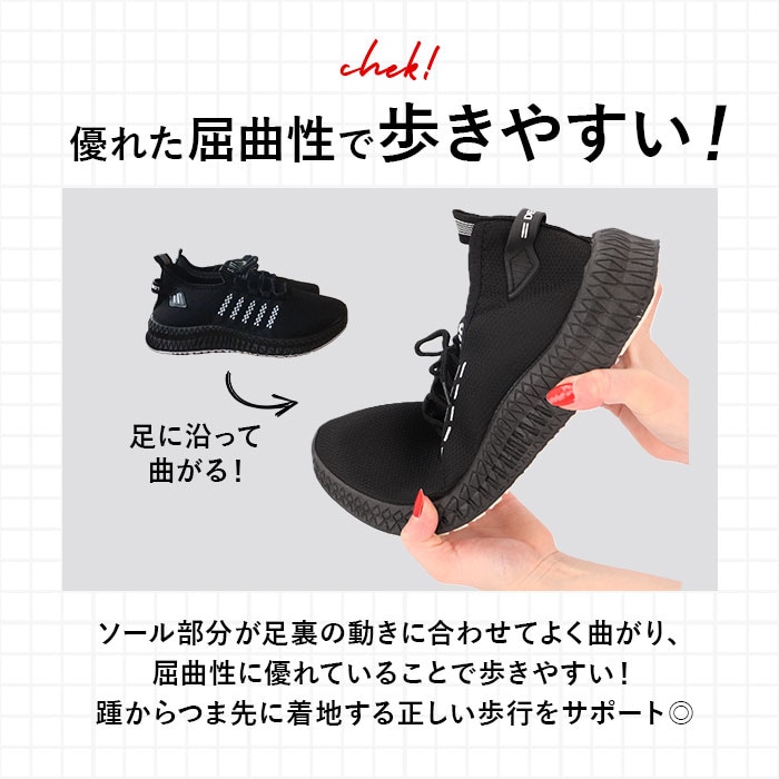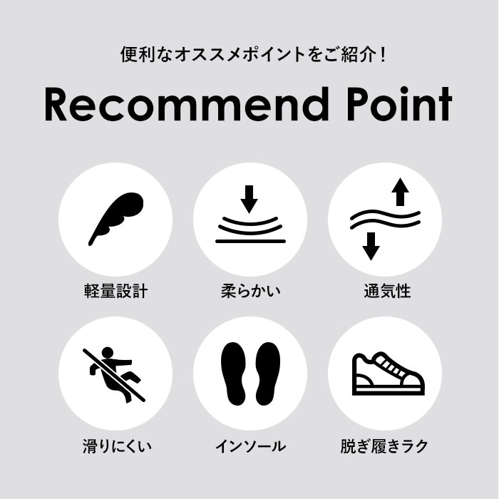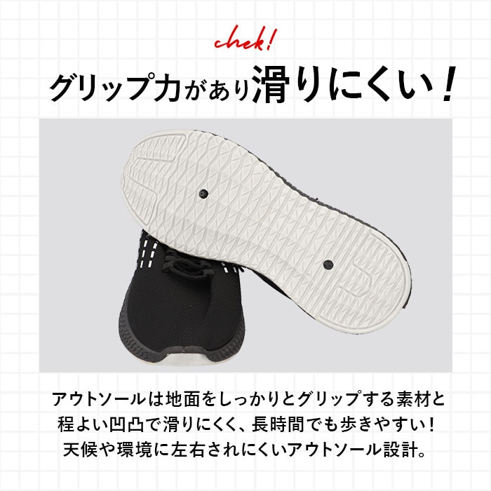 | 商品説明 | 柔らかな素材を使用した優しい履き心地のスニーカーが発売。【軽量素材】軽量で足を包み込むような優しいフィット感。通気性も良く、ムレにくく快適な履き心地。【滑りにくいアウトソール】アウトソールは滑りにくい素材を使用。地面からの衝撃もやわらげるので長時間でも歩きやすい!【かかとのタブ】かかと部分には便利なタブが付いており、指を引っ掛けて簡単に履けることができて便利。【インソール取り外し可能】インソールは取り外しができるので、手軽に水洗いができていつでも清潔。【持ち運びに便利】履いていない時はフラットになり、持ち運びに便利。旅行やジムなど、様々なシーンで活躍。 |