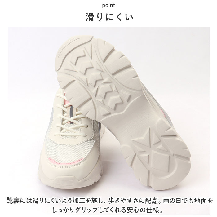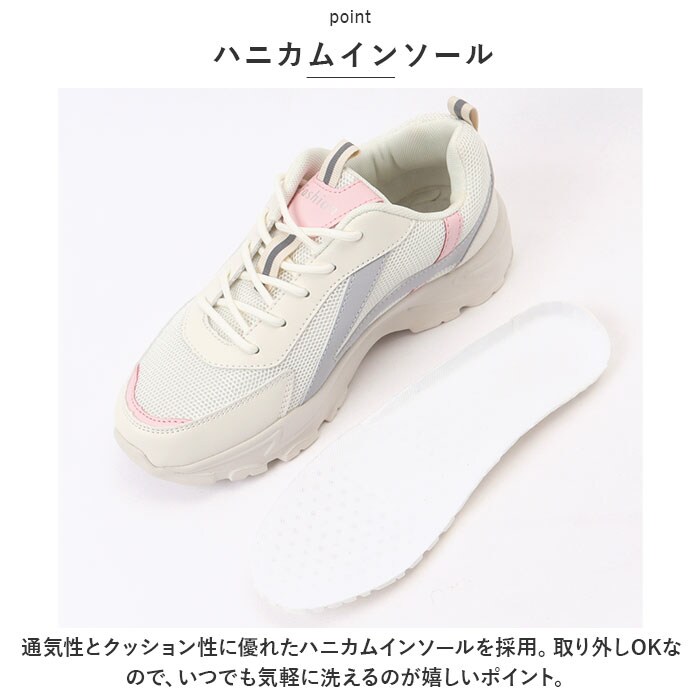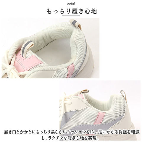 | 商品説明 | クッション性に優れた、もっちりラクな履き心地。レディーススニーカーが登場。【もっちり履き心地】履き口とかかとにもっちり柔らかいクッションをIN。足にかかる負担を軽減し、ラクチンな履き心地を実現。【シンプルデザイン】お洋服やシーンを選ばない、シンプルなデザイン。パンツだけでなく、スカートやワンピースとの相性もGOOD。毎日使いやすい!【通気性◎】アッパーはメッシュのような仕様になっており、通気性に優れたアイテム。オールシーズン着用でき快適な靴内をキープ!【ハニカムインソール】通気性とクッション性に優れたハニカムインソールを採用。取り外しOKなので、いつでも気軽に洗えるのが嬉しいポイント。【滑りにくい】靴裏には滑りにくいよう加工を施し、歩きやすさに配慮。雨の日でも地面をしっかりグリップしてくれる安心の仕様。【選べるカラー】優しいカラーからクールなカラーまで、選べるカラーバリエーション。お好みをチョイス! |