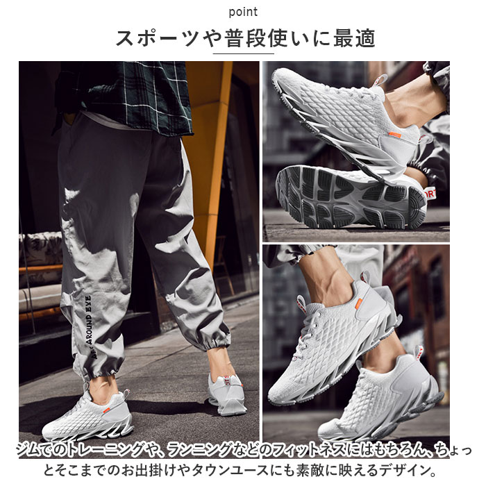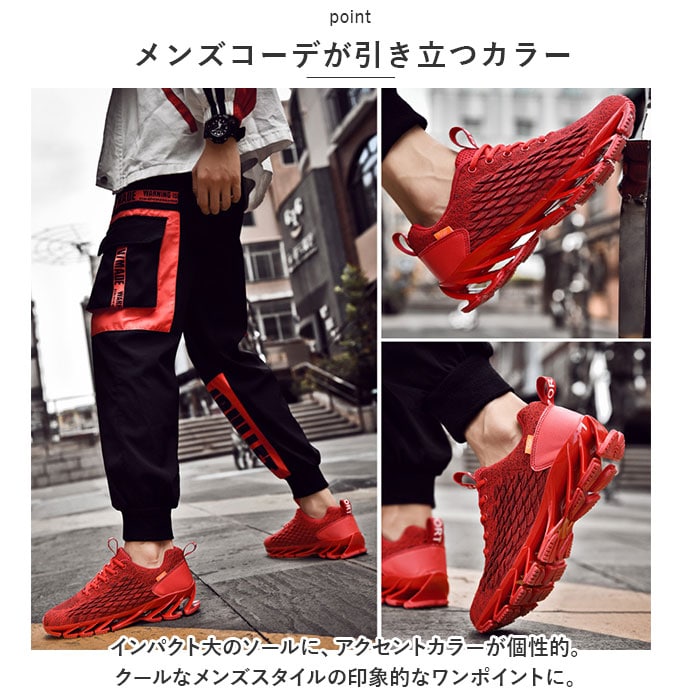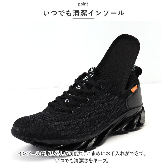 | 商品説明 | 道行く人の視線を釘付けに★スタイリッシュな足元を演出してくれるスニーカーの登場!【目を見張るデザイン】思わず目を見張るスタイリッシュなスプリングソールで道行く人の視線を釘付けに★【デザインと機能性を両立!】アッパー部分は、柔らかく通気性抜群のニット生地。かかと部分のフェイクレザーと組み合わせ、クールなルックスと機能性を両立。【疲れにくいスプリングソール】バネのようなスプリングソールと適度に柔らかいインソールが足裏にかかる衝撃を優しく吸収。長時間歩いても疲れにくく、快適な歩行スタイルをサポート。【ふわっと軽快な履き心地】アッパーは軽量なニット、ソールには屈曲性に優れたソールを採用することで、軽快な履き心地。【柔らかな履き口がフィット】履き口周りも柔らかなメッシュクッションで仕上げ、足首やかかとを靴ズレから優しく保護。かかとのプルタブで着脱もスムーズ。【調整自在なシューレーススタイル】足の甲の幅に合わせてサイズ調整が自在にできる、クラシックなシューレーススタイル。【いつでも清潔インソール】インソールは取り外しが可能で、こまめにお手入れができて、いつでも清潔さをキープ。【スポーツや普段使いに最適】ジムでのトレーニングや、ランニングなどのフィットネスにはもちろん、ちょっとそこまでのお出掛けやタウンユースにも素敵に映えるデザイン。【メンズコーデが引き立つカラー】インパクト大のソールに、アクセントカラーが個性的。クールなメンズスタイルの印象的なワンポイントに。 |