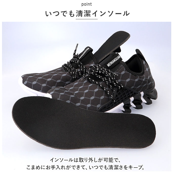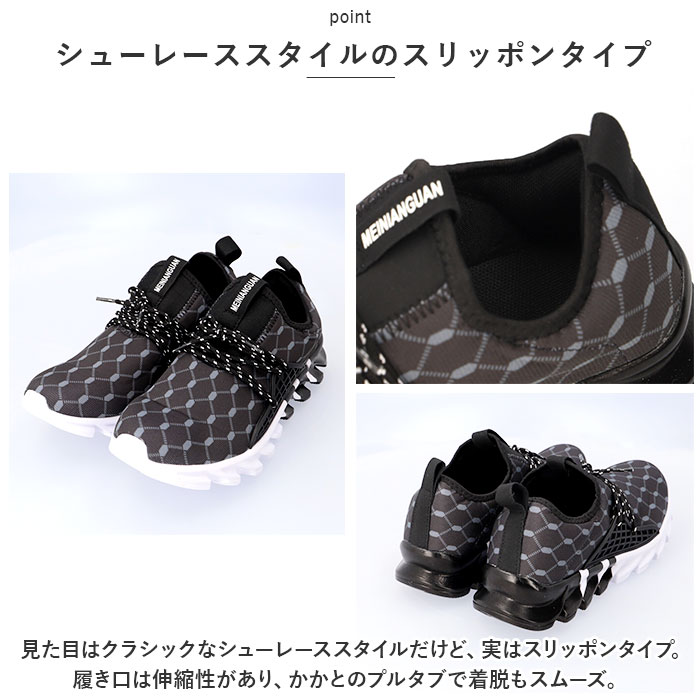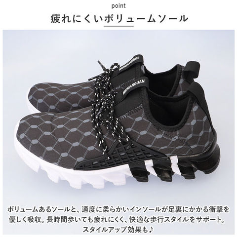 | 商品説明 | 道行く人の視線を釘付けに★スタイリッシュな足元を演出してくれるスリッポンタイプのスニーカーの登場!【目を見張るデザイン】思わず目を見張るスタイリッシュなソールで道行く人の視線を釘付けに★【シューレーススタイルのスリッポンタイプ】見た目はクラシックなシューレーススタイルだけど、実はスリッポンタイプ。履き口は伸縮性があり、かかとのプルタブで着脱もスムーズ。【デザインと機能性を両立!】アッパー部分は、柔らかく通気性抜群のメッシュ素材。スポーティーなルックスと機能性を両立。【疲れにくいボリュームソール】ボリュームあるソールと、適度に柔らかいインソールが足裏にかかる衝撃を優しく吸収。長時間歩いても疲れにくく、快適な歩行スタイルをサポート。スタイルアップ効果も♪【ふわっと軽快な履き心地】片足約162gの軽さ。ソールには屈曲性に優れたソールを採用することで、軽快な履き心地。【いつでも清潔インソール】インソールは取り外しが可能で、こまめにお手入れができて、いつでも清潔さをキープ。【スポーツや普段使いに最適】ジムでのトレーニングや、ランニングなどのフィットネスにはもちろん、ちょっとそこまでのお出掛けやタウンユースにも素敵に映えるデザイン。【メンズコーデが引き立つカラー】インパクト大のソールとスポーティーなデザインで、クールなメンズスタイルに。スポーツやレジャー、アウトドアはもちろん、タウンユースにもGOOD。 |