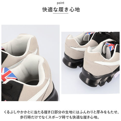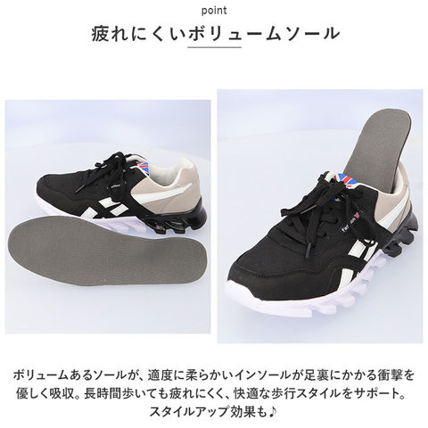 | 商品説明 | ブリティッシュデザインが品よくコーデを仕上げる☆デイリー使いからスポーツシーンまで幅広く活躍するメンズスニーカー。【ブリティッシュデザイン】英国国旗が目を見張るシュータンとサイドのロゴにスエード調素材が、品よくコーデを仕上げてくれる♪フォルム、カラー、デザインすべてがスマートに。履くだけで足元がスタイリッシュにキマる!【ふわっと軽快な履き心地】片足約148gの軽さで履いていることを忘れてしまうほどの軽い履き心地。(※41(25.5cm)の片足分の重量です。)【快適な履き心地】くるぶしやかかとに当たる履き口部分の生地にはふんわりと厚みをもたせ、歩行時だけでなくスポーツ時でも快適な履き心地。【疲れにくいボリュームソール】ボリュームあるソールが、適度に柔らかいインソールが足裏にかかる衝撃を優しく吸収。長時間歩いても疲れにくく、快適な歩行スタイルをサポート。スタイルアップ効果も♪【滑りにくい】アウトソールは凸凹フォルムで滑り止加工されているので、雨に濡れた地面やツルツルとした床でも滑りにくい安心仕様。【シンプルデザイン】お洋服に合わせやすいシンプルデザイン!タウンユースはもちろん、スポーツやレジャー、アウトドアにもGOOD。 |