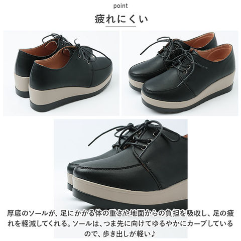 | 商品説明 | 厚底タイプでグーンとスタイルアップ!超軽量設計で歩きやすい♪「レディース 厚底シューズ」が登場!【スタイルアップ】約5.5センチの厚底ソール仕様。履くだけで脚長効果がありスタイルアップしてくれる♪歩きやすいので、ヒールが苦手な方にもオススメ。【超軽量設計】見た目に反して軽い履き心地のアイテム。長時間の着用もストレスなく過ごせる◎おしゃれさと快適さを両立。【疲れにくい】厚底のソールが、足にかかる体の重さや地面からの負担を吸収し、足の疲れを軽減してくれる。ソールは、つま先に向けてゆるやかにカーブしているので、歩き出しが軽い♪【レースアップデザイン】レースアップデザインで、キュッと締めれば足へのフィット感をUPさせられる!ほどよくカジュアルダウンし、毎日使いにもぴったり☆【滑り止めつき】靴底には滑り止め加工を施し、雨の日の濡れた地面でも安心して歩行できる。【外せるインソール】インソールは外してお洗濯OK。簡単お手入れでいつでも清潔に保て、快適な靴内をキープでるのも嬉しいポイント。【合わせやすい◎】配色を抑えたシンプルなカラー仕様。パンツスタイルにもスカートコーデにもマッチ◎肌なじみの良いカラーで、ひとつあると重宝するアイテム。 |