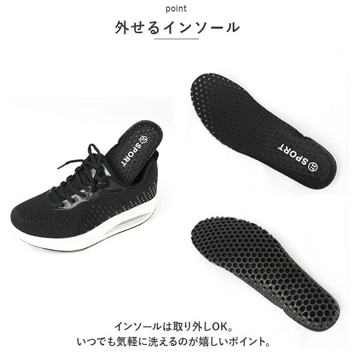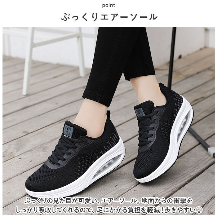 | 商品説明 | ぷっくりエアーソール!歩きやすく、しっかりトレンド感☆スニーカー レディースが登場。【ぷっくりエアーソール】ぷっくりの見た目が可愛い、エアーソール。地面からの衝撃をしっかり吸収してくれるので、足にかかる負担を軽減!歩きやすい◎【厚底スタイル】厚底タイプのスニーカーなので、スタイルアップ効果も!足元にボリューム感が出るので、トレンド感のある今っぽコーデに仕上がる♪【優しいフォルム】厚底のかっこいい雰囲気に、丸みのあるフォルムで女性らしさをプラス。パンツスタイルだけでなく、スカートやワンピースとの相性もGOOD☆【シンプルデザイン】お洋服やシーンを選ばない、シンプルなデザイン。お出かけや通勤通学はもちろん、スポーツシーン、アウトドアなど幅広く使える!【通気性◎】メイン素材はメッシュ仕様になっており、通気性に優れたアイテム。オールシーズン着用でき快適な靴内をキープ!【外せるインソール】インソールは取り外しOK。いつでも気軽に洗えるのが嬉しいポイント。【滑りにくい】靴裏には滑りにくいよう加工を施し、歩きやすさに配慮。雨の日でも地面をしっかりグリップしてくれる安心の仕様。【選べるカラー】どの色もコーデに取り入れやすい、選べるカラー。お好みをチョイス! |