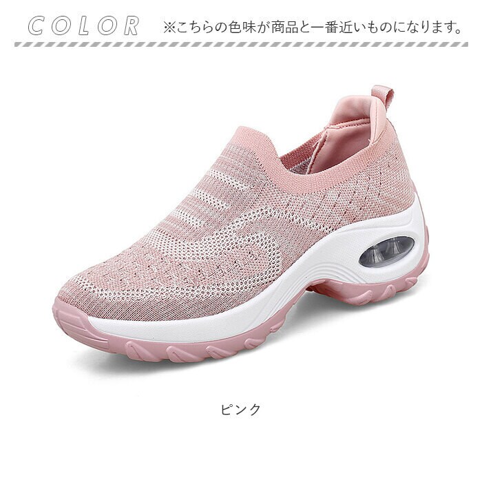 | 商品説明 | つま先がスッと入って気軽に履ける♪素足のままでも心地よい「レディース ニットスニーカー」が新登場。【通気性抜群のニット素材】アッパー生地は、目の細かいメッシュとリブ状のストライプを刻んだニット素材をシームレスに編み上げ、真夏でも足元はサラリと快適。【厚底×エアクッション】厚底スタイルのソールかかと部分に、エアクッションを内蔵。歩行時の衝撃を優しく吸収し、長時間履いても疲れにくいのが嬉しいポイント。【軽快なフットワークを実現】足のカタチにフィットする薄手の生地感で、片足の重量はわずか約315g。本格スポーツシューズの機能性と軽快なフットワークを両立し、運動時のパフォーマンスが向上。(※37[23.5cm]サイズの商品、片足分の重量です。)【スポッと脱ぎ履きスムーズ】足の甲の当たるシューズ履き口部分はリブ生地が程よく伸縮し、プルタブを摘まみながら履けば、スリッポンみたいに着脱スムース。【柔らかな履き口がフィット】シューズ背面のかかと周りは厚みのあるスポンジクッションを重ねて仕上げ、かかとやアキレス腱を靴ズレから優しく保護。【滑りにくいアウトソール】流線形の凹凸を刻んだアウトソールが、雨に濡れた路面やフラットなフロアーもしっかりとグリップ。【いつでも清潔インソール】足裏のカーブにピタッとフィットするカップインソールは取り外しが可能。こまめにお手入れができて、いつでも清潔さをキープ。【嬉しい脚長効果も♪】ちょっぴり厚底約4cmのソールで脚長効果にも期待♪スポーツやお出掛けの時も、素敵にスタイルUP!【コーデ自在のシンプルカラー】スポーツウェアだけでなく、大人カジュアルな服装にも自然に馴染むエレガント&ファンシーな大人カラーのバリエーション。【スポーツや普段使いに最適】ジムでのトレーニングや、ランニングなどのフィットネスにはもちろん、ちょっとそこまでのお出掛けやオフィス用のコンフォートシューズにもオススメ! |