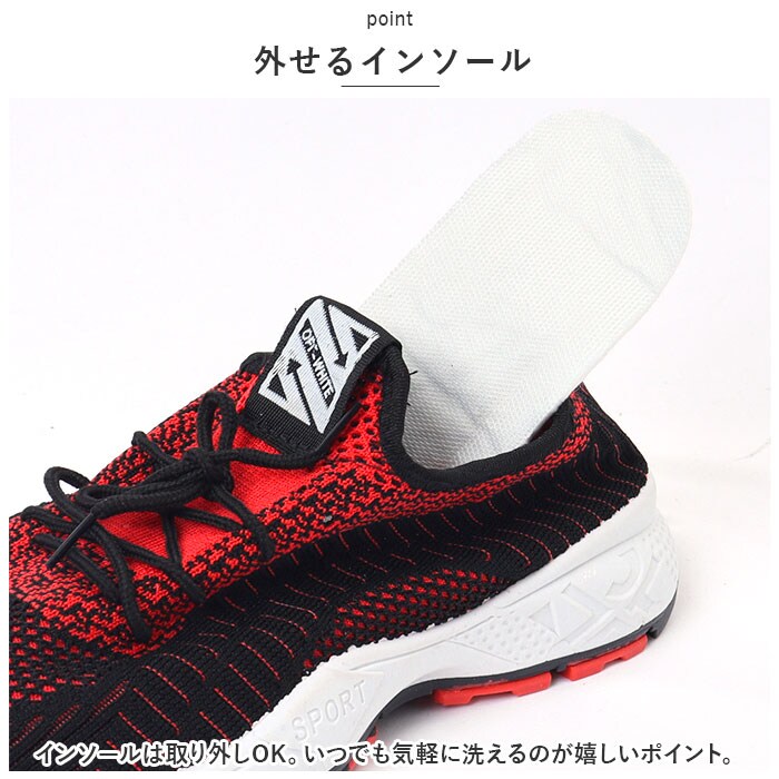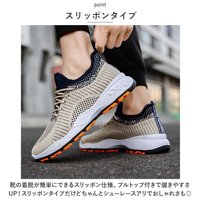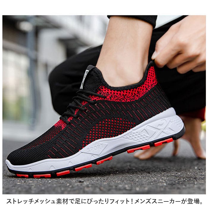 | 商品説明 | ストレッチメッシュ素材で足にぴったりフィット!メンズスニーカーが登場。【ストレッチメッシュ素材】伸縮性のあるストレッチメッシュ素材を使用。アッパー全体が柔らかく足の形にフィットするので、ストレスフリーで快適な履き心地。【通気性バツグン】ソール以外はすべてストレッチメッシュ素材。通気性がバツグンなので、汗をかくスポーツシーンでもムレにくく快適に。【スリッポンタイプ】靴の着脱が簡単にできるスリッポン仕様。プルトップ付きで履きやすさUP!スリッポンタイプだけどちゃんとシューレースアリでおしゃれさも◎【シンプルデザイン】幅広いシーンにマッチするシンプルデザイン!スポーツやレジャー、アウトドア、もちろんタウンユースにもGOOD。【スマートなフォルム】ボリュームのないスッキリしたスマートフォルムが魅力。履くだけで足元がスタイリッシュにキマる!【滑りにくい】ソール部分は凸凹加工済み。地面をしっかりグリップする、滑りにくい安心仕様。【外せるインソール】インソールは取り外しOK。いつでも気軽に洗えるのが嬉しいポイント。 |