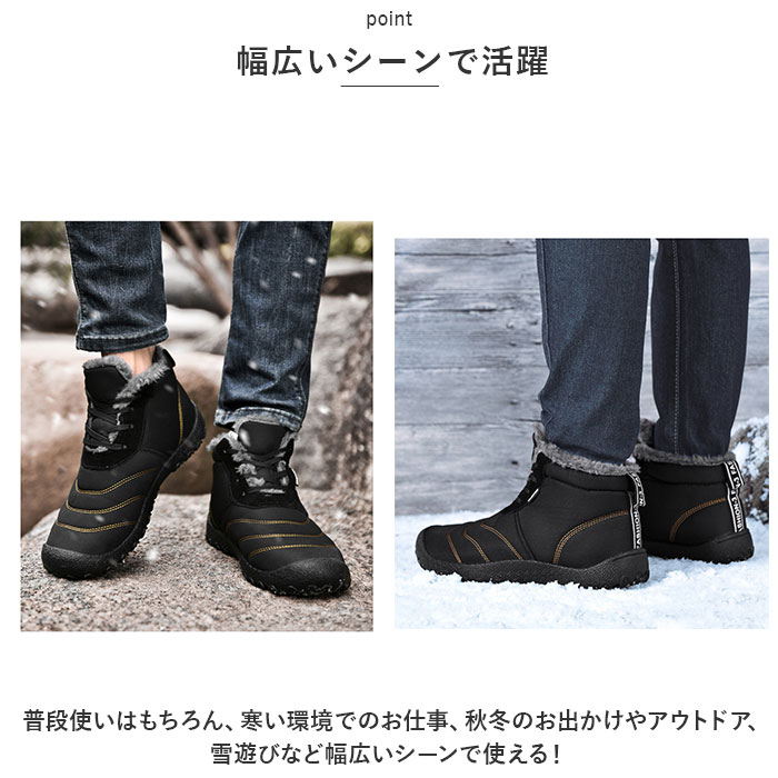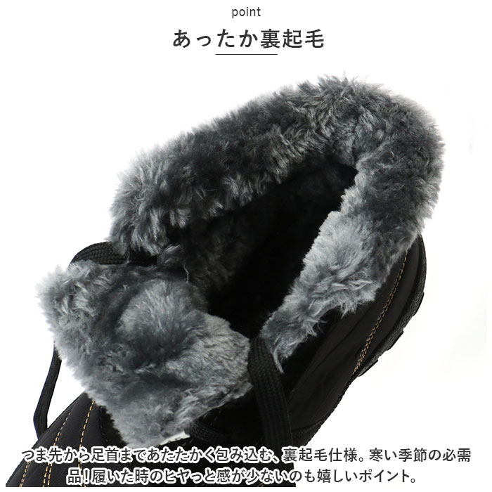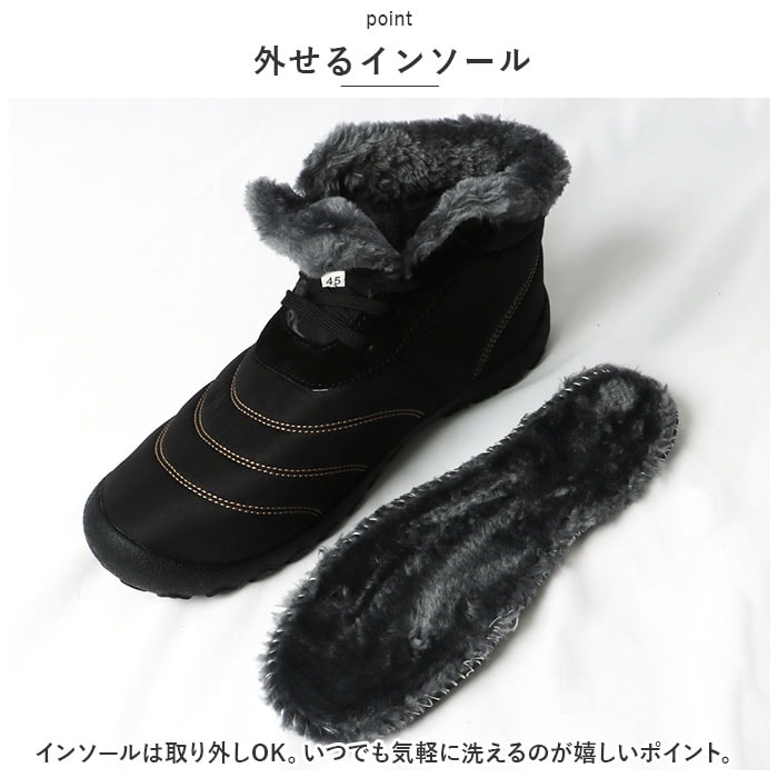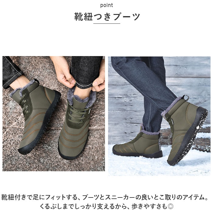 | 商品説明 | 裏起毛がつま先から足首まで包み込む♪撥水機能アリで、雪の日にも活躍!スノーブーツが登場。【あったか裏起毛】つま先から足首まであたたかく包み込む、裏起毛仕様。寒い季節の必需品!履いた時のヒヤっと感が少ないのも嬉しいポイント。【靴紐つきブーツ】靴紐付きで足にフィットする、ブーツとスニーカーの良いとこ取りのアイテム。くるぶしまでしっかり支えるから、歩きやすさも◎【撥水機能】水滴を弾く撥水機能アリ!雪の日や濡れた地面を歩いても、水が染み込みにくいので防寒対策にも最適。※完全防水ではありません。【シンプルデザイン】様々なコーデにマッチするシンプルデザイン。ボリュームを抑えたスタイリッシュさが魅力。ユニセックス、エイジレスで使えるのも嬉しいポイント。【幅広いシーンで活躍】普段使いはもちろん、寒い環境でのお仕事、秋冬のお出かけやアウトドア、雪遊びなど幅広いシーンで使える!【滑りにくい】靴裏には滑りにくいよう加工を施し、歩きやすさに配慮。雨の日でも地面をしっかりグリップしてくれる安心の仕様。【外せるインソール】インソールは取り外しOK。いつでも気軽に洗えるのが嬉しいポイント。 |