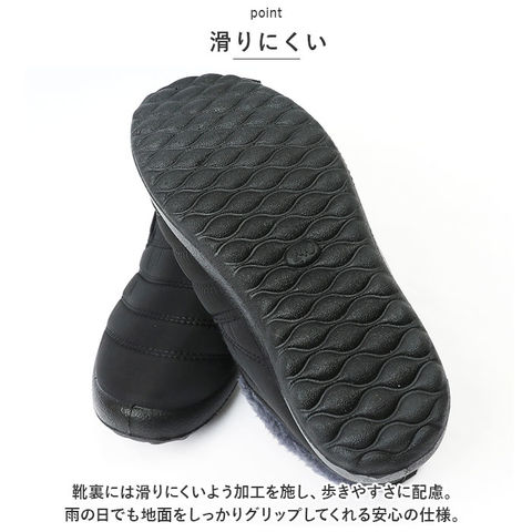 | 商品説明 | 裏起毛で足先まであったかい♪軽量で歩きやすい スノーシューズ が登場。【あったか裏起毛】足をふんわり包み込む、裏起毛仕様。寒い季節も足先までぬくぬくあたたかい♪履いた時のヒヤっと感が少ないのも嬉しいポイント。【スリッポンタイプ】靴紐レスのスリッポンタイプ。履き口がグンと伸びるゴムを搭載し着脱がラクラク。かかとは柔らかい仕様なので、踏んで履いてもOK!【撥水機能】水滴を弾く撥水機能アリ!雪の日や濡れた地面を歩いても、水が染み込みにくいので防寒対策にも最適。※完全防水ではありません。【軽量設計】足元をあたたかくカバーしてくれ、さらに軽量設計をプラス!たくさん歩いても負担がかかりにくい、女性に優しいつくり。【シンプルデザイン】様々なコーデにマッチするシンプルデザイン。普段使いから寒い環境でのお仕事、アウトドアなど幅広いシーンで使える!【滑りにくい】靴裏には滑りにくいよう加工を施し、歩きやすさに配慮。雨の日でも地面をしっかりグリップしてくれる安心の仕様。【外せるインソール】インソールは取り外しOK。いつでも気軽にお手入れできるのが嬉しいポイント。 |