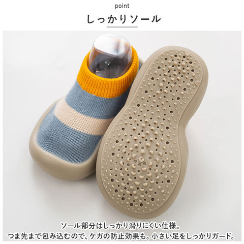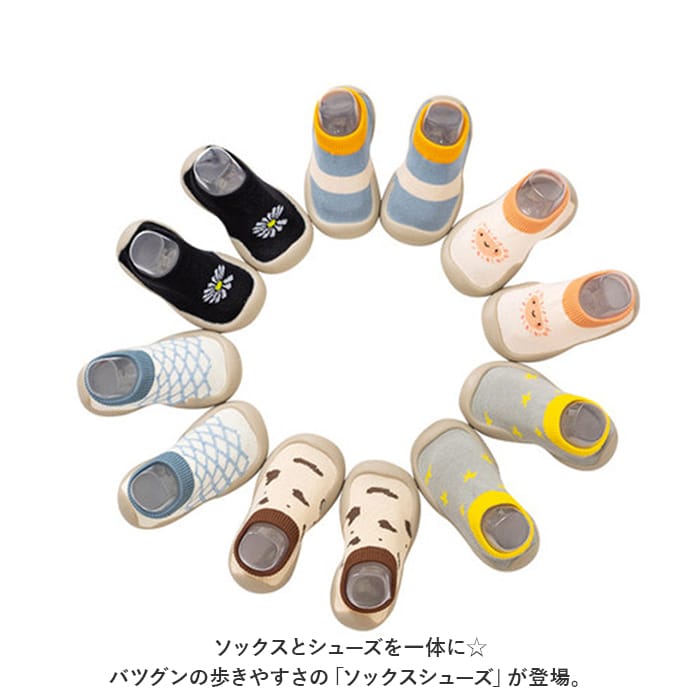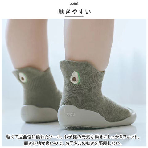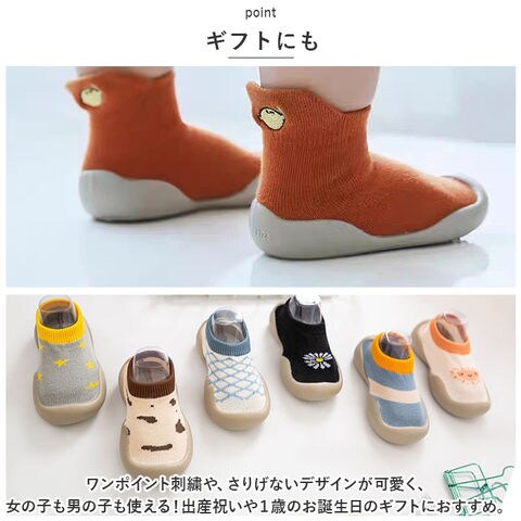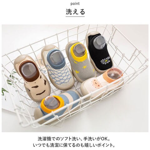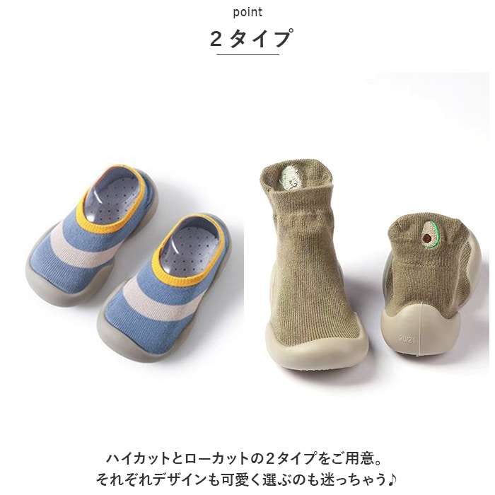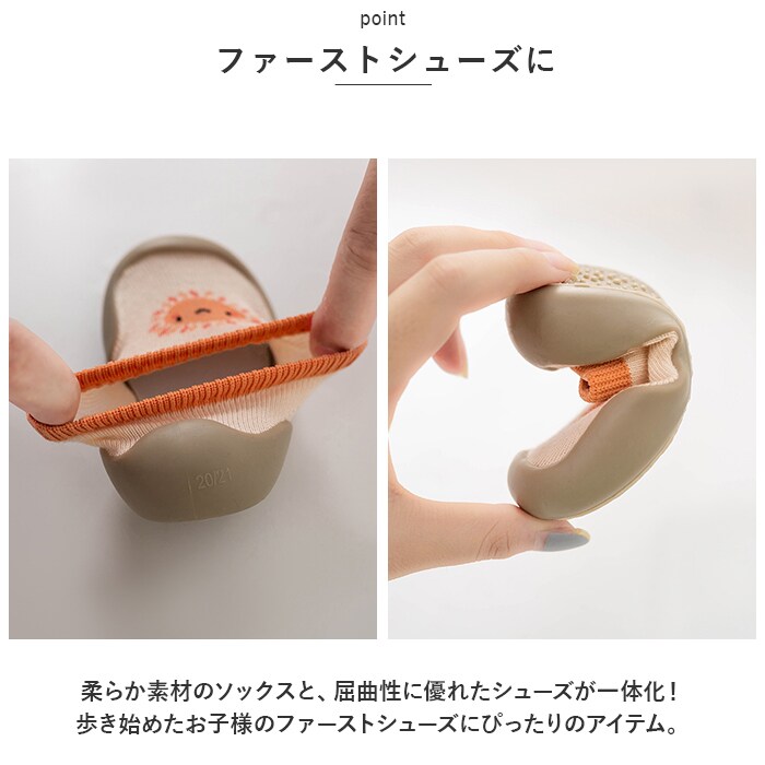 | 商品説明 | ソックスとシューズを一体に☆バツグンの歩きやすさの「ソックスシューズ」が登場。【ファーストシューズに】柔らか素材のソックスと、屈曲性に優れたシューズが一体化!歩き始めたお子様のファーストシューズにぴったりのアイテム。【履きやすい】靴下感覚で履けるので、お子様も違和感が少なく着用できる。履き口は柔らかい靴下と同じなので、履きやすさ◎【しっかりソール】ソール部分はしっかり滑りにくい仕様。つま先まで包み込むので、ケガの防止効果も。小さい足をしっかりガード。【動きやすい】軽くて屈曲性に優れたソール。お子様の元気な動きにしっかりフィット。履き心地が良いので、お子さまの動きを邪魔しない。【優しい素材】コットンを使用した靴下。お子様のデリケートなお肌に優しいので、安心して使用できる。【洗える】洗濯機でのソフト洗い、手洗いがOK。いつでも清潔に保てるのも嬉しいポイント。【2タイプ】ハイカットとローカットの2タイプをご用意。それぞれデザインも可愛く選ぶのも迷っちゃう♪【ギフトにも】ワンポイント刺繍や、さりげないデザインが可愛く、女の子も男の子も使える!出産祝いや1歳のお誕生日のギフトにおすすめ。 |