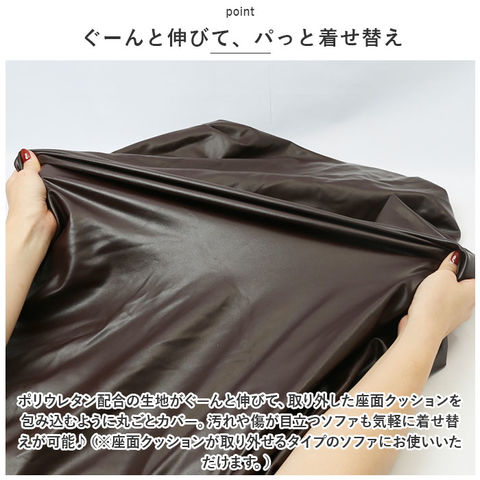 | 商品説明 | リッチな素材感で、ソファの座面をピンポイントリニューアル!お気に入りのカラーで模様替えが楽しめる「1人掛け用 レザー調ソファー座面カバー」!【今お使いのソファにフィット!】タテ・ヨコに程よく伸縮するストレッチ素材が、擦り切れてキズの付きやすい座面クッションにぴったりフィット。薄手なのにシワが寄りにくいのも嬉しいポイント。【ぐーんと伸びて、パっと着せ替え】ポリウレタン配合の生地がぐーんと伸びて、取り外した座面クッションを包み込むように丸ごとカバー。汚れや傷が目立つソファも気軽に着せ替えが可能♪(※座面クッションが取り外せるタイプのソファにお使いいただけます。)【外れにくくて、仕上がりキレイ】カバーをすっぽりと被せたら、カバー裾部の伸縮ゴムが座面クッションの四隅をしっかり捉えるので、カバーのズレやヨレもしっかり防止!キチンと感のある仕上がりが好印象。【高級感のあるレザー調素材】生地表面は上品な光沢と柔らかな感触が肌に馴染むPUレザー素材。ドリンクの飲みこぼしや気になる汚れもサッと拭き取れて、お手入れ簡単。(※生地表面にはPUフェイクレザー。生地裏側に伸縮性をもたらすポリウレタン弾性繊維を配合したポリエステル生地を使用しています。)【選べるカラーで、気持ち華やぐ】いつものお部屋をちょっぴり贅沢に彩る、上品で深みのあるカラーバリエーション。季節ごとにインテリアのイメージに合わせて模様替えをすれば、お部屋も気持ちもリフレッシュ! |