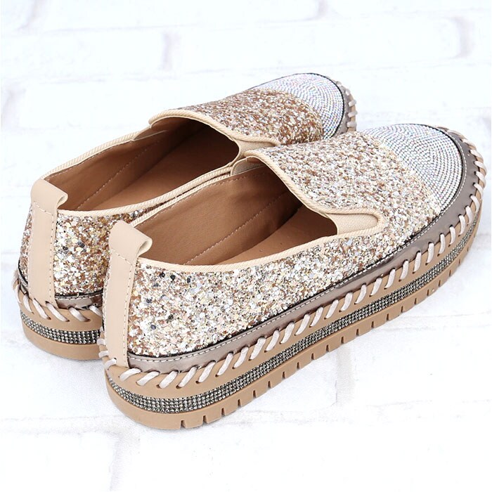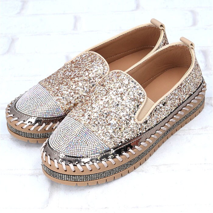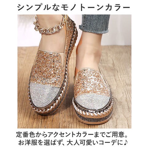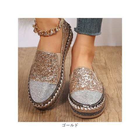 スリッポン ローファー レディース 靴 pmysr007【ゴールド】【38(24cm)】
