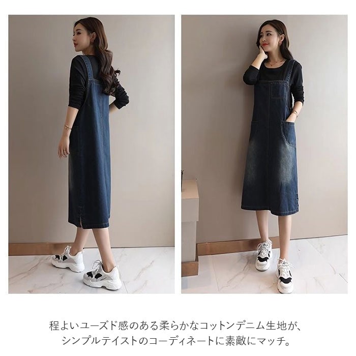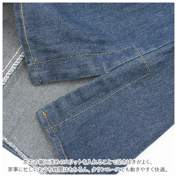 | 商品説明 | 大人っぽさも、可愛らしさもどちらも叶う♪着回し自在の「デニム・サロペットスカート」ゆったりと裾が広がった緩やかなAラインに、膝が隠れるほどの絶妙な丈感がさりげないオトナ可愛さを演出。程よいユーズド感のある柔らかなコットンデニム生地が、シンプルテイストのコーディネートに素敵にマッチ。頭からすっぽりと被って、肩紐の左右から腕を通すだけで、着替えもラクラク。フロントの左右・腰の高さにはきちんとポケットをデザインし、ハンカチやスマホなど普段使いの小物の持ち歩きにも便利。ビブの左胸にもミニポケット付き。左右の裾に浅めのスリットを入れることで足さばきがよく、家事に忙しいおうち時間はもちろん、タウンユースでも動きやすく快適。ゆるっと着れるのに、すっきりとしたシルエット。トップスにシンプルなTシャツやニットを合わせて、オールシーズン素敵にコーディネート。 |