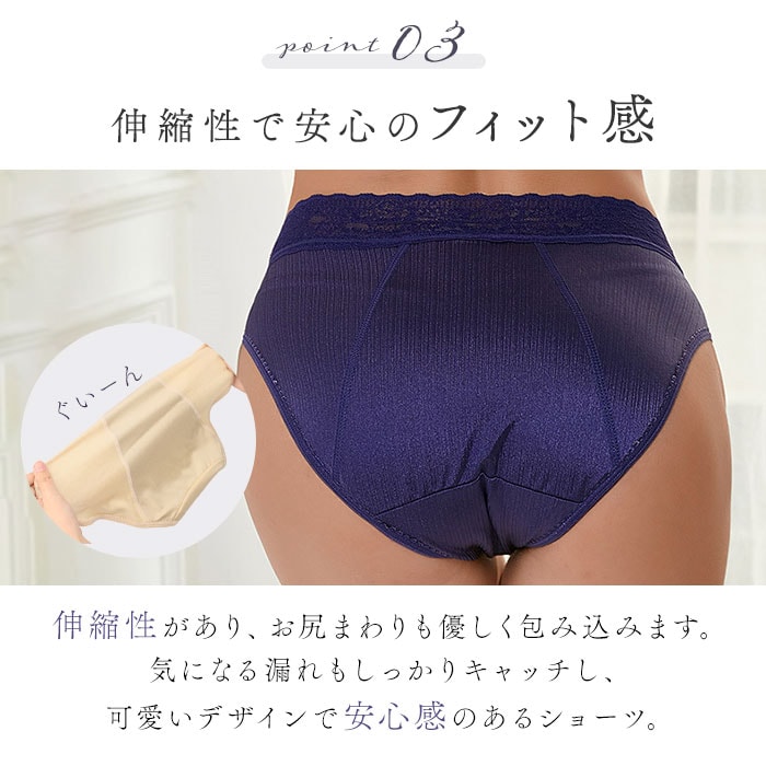 サニタリーショーツ 吸水 2枚 pmyss001【ネイビー×2】【Mサイズ】