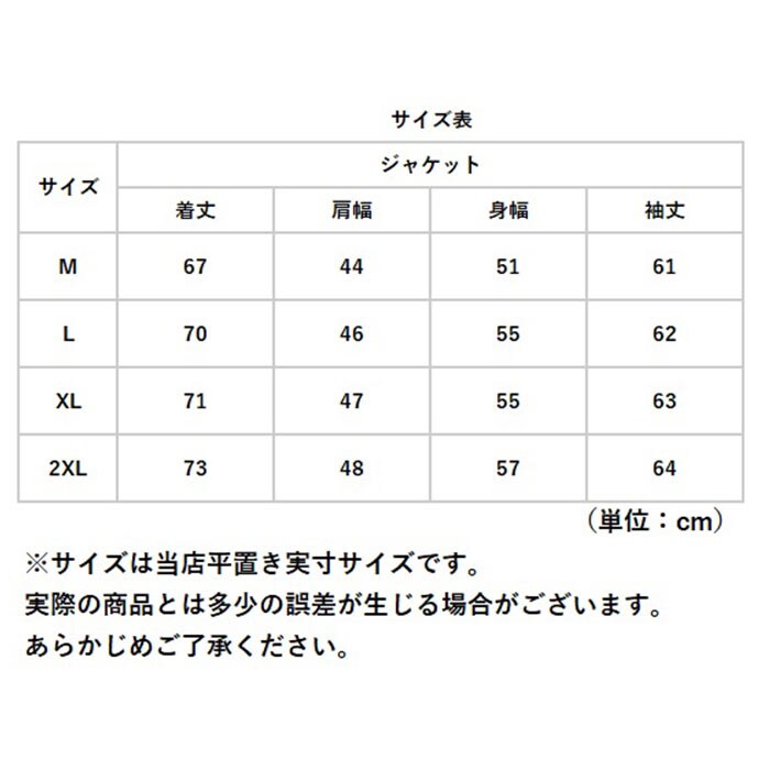 | サイズ | [メンズ] ・Mサイズ ・Lサイズ ・XLサイズ ・2XLサイズ ※サイズについて詳細は、商品画像の中にあるサイズ表をご覧くださいませ。 |