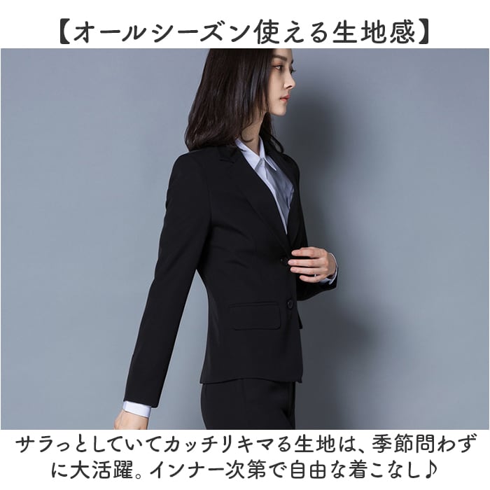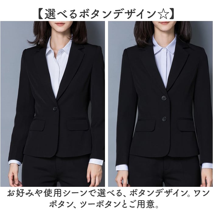| 商品説明 | 【これでOK!嬉しい上下セット☆】お仕事もリクルートもセレモニーもおまかせ!「レディーススーツ 2点セット」が登場。【定番が嬉しい!パンツスーツ】幅広いシーンに対応できる、1つは欲しいレディーススーツ。スッキリ仕上がるブラック仕様。【オールシーズン使える生地感】サラっとしていてカッチリキマる生地は、季節問わずに大活躍。インナー次第で自由な着こなし♪【イージーケアが嬉しいポイント】シワになりにくい、ポリエステル素材を採用。ほどよい光沢感で上品な印象に。【ポケットつきで便利◎】ジャケットには、ポケットを2つ配置。スマホや小物をサッと入れられて、快適に。【選べるボタンデザイン☆】お好みや使用シーンで選べる、ボタンデザイン。ワンボタン、ツーボタンとご用意。 |