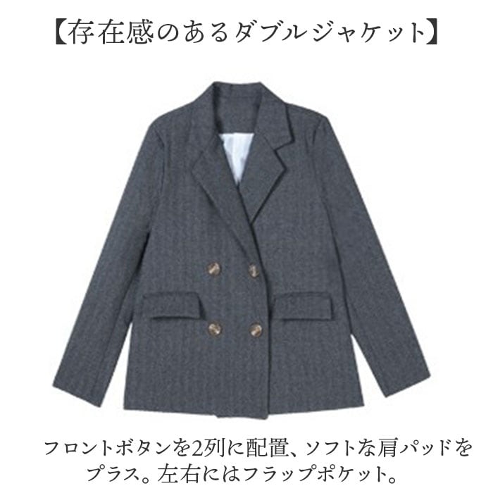 | 商品説明 | 【通勤やフォーマルシーンで活躍】シンプルながらこなれた印象に。おしゃれ女子にぴったりな「ビジネススーツ」。【程よく抜け感のあるスタイルが完成】ジャケット&パンツのセット。きちんと感がありつつ、ラフにキマるアイテム。【存在感のあるダブルジャケット】 フロントボタンを2列に配置、ソフトな肩パッドをプラス。左右にはフラップポケット。【シンプルなストレートパンツ】すっと落ちて足元スラリ。フロントファスナー&ボタンで着脱でき、左右にポケット付き。【ウエストマークになるベルトが付属】パンツのループに通して装着。トップスインした時も、ウエストすっきり◎【軽やかな着心地でストレスフリー】サラリとした質感でロングシーズン活躍。ジャケットは裏地付きでムレを軽減、摩擦からも保護。【お子さまの学校行事にもおすすめ】フォーマルシーンにも馴染み、お子さまの入学・卒業式への参加もOK!金ボタンがアクセント。 |