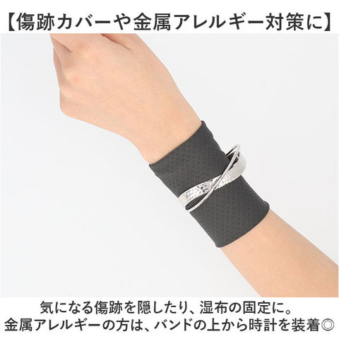 | 商品説明 | 【汗が気になる季節の相棒に】汗が手に流れるのを防いで快適◎色んなシーンで使える「リストバンド」2ペアセット。【スマートな付け心地を実現】伸縮性に優れた素材で、手首に優しくフィット。締め付けることなく、軽やかな着用感。【汗ばむ季節もサラッと感をキープ】ひんやり薄手で、通気性の良い素材。汗をかいてもムレにくく、夏のアクティブシーンで大活躍。【気化熱の作用で涼しさアップ】汗や水で濡れると気化熱の効果によってひんやり感が増し、クールダウン。【運転中やアウトドアでも重宝】日差しが当たって汗ばむ季節のドライブや、キャンプなどでも重宝。【傷跡カバーや金属アレルギー対策に】気になる傷跡を隠したり、湿布の固定に。金属アレルギーの方は、バンドの上から時計を装着◎【洗濯できてお手入れラクラク】汚れや汗が気になったら、自宅で洗濯OK。いつも清潔に保てて、繰り返し使えるのが嬉しい!【お好みで選べる2サイズをご用意】・8cmと12cmの2サイズ。自分に合った長さを選べる、ユニセックス仕様。【コーデに馴染むベーシックカラー】どなたでも選びやすく、使い勝手の良いカラー。洗い替えに便利な2ペアセット。 |