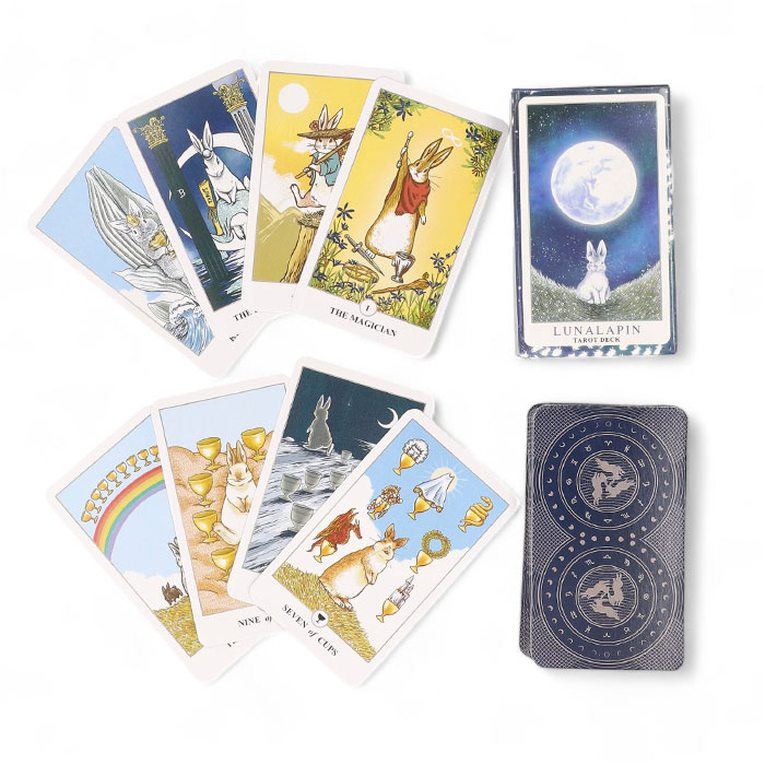 | 商品説明 | 【想いを込めて描かれた美しいカード】初心者さんも扱いやすいコンパクトサイズ。「タロットカード」が登場。【うっとり眺めたくなるデザイン】1枚1枚丁寧に描かれたイラストは、繊細で神秘的なラビットデザイン。眺めるだけで癒される♪【正逆がわからない裏面仕様】裏面は正逆がわからないよう、対象的なデザインに。安心できる作りが嬉しい!【扱いやすいコンパクトサイズ】女性でも扱いやすい、トランプのようなサイズ感。扱いやすいから初心者さんにもオススメ。【お子様にも安心の優しいイラスト】優しいタッチで描かれているので、お子さまが見ても怖くなく楽しめる♪家族みんなでENJOY◎【専用ケースつきで持ち運びOK】専用のケースに収納でき、旅行やお出かけ先へ持ち運びが可能。キュートなラビットデザイン! |