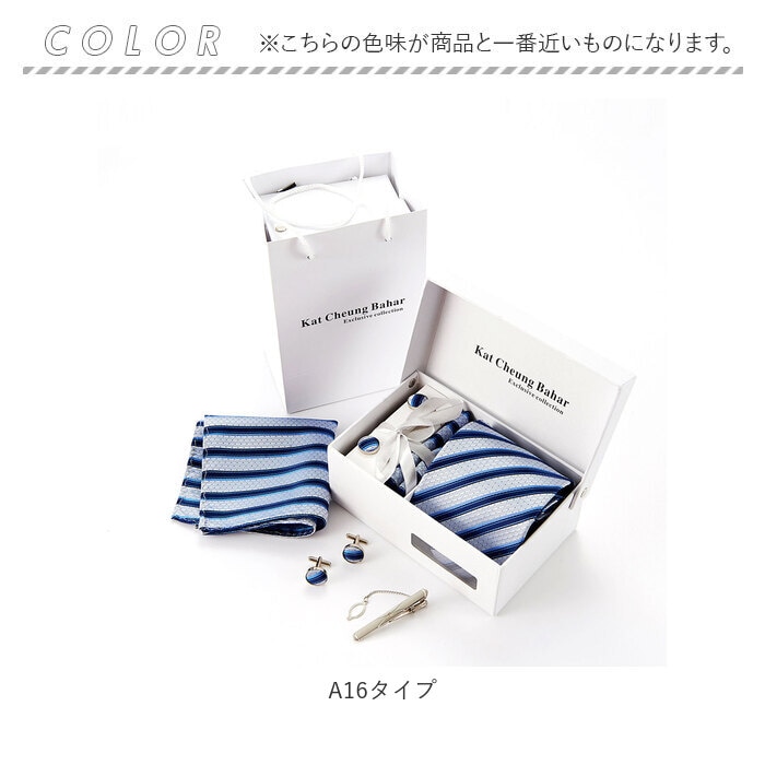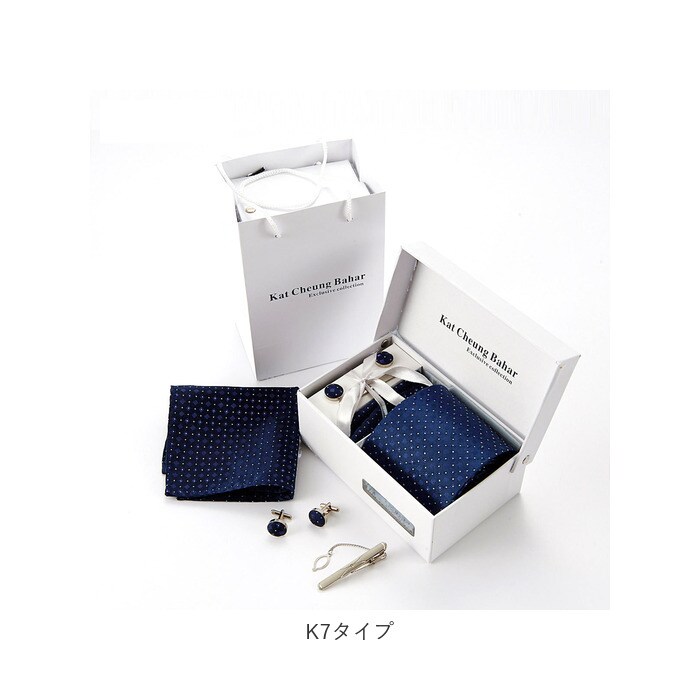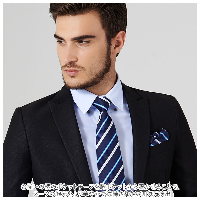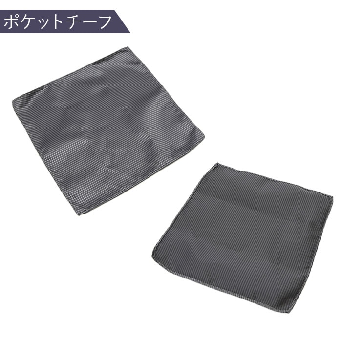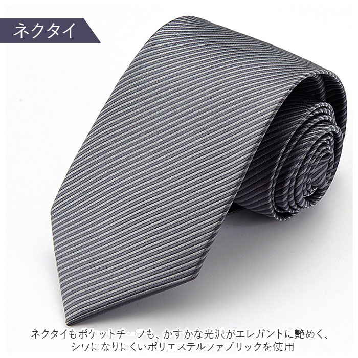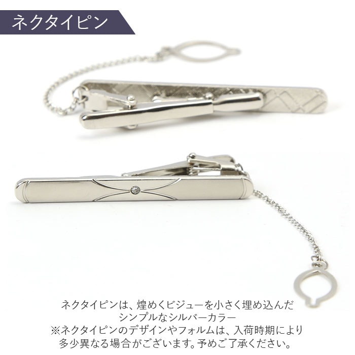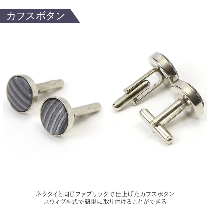 | 素材 | [ネクタイ、ポケットチーフ]ポリエステル [カフスボタン、ネクタイピン]金属 |