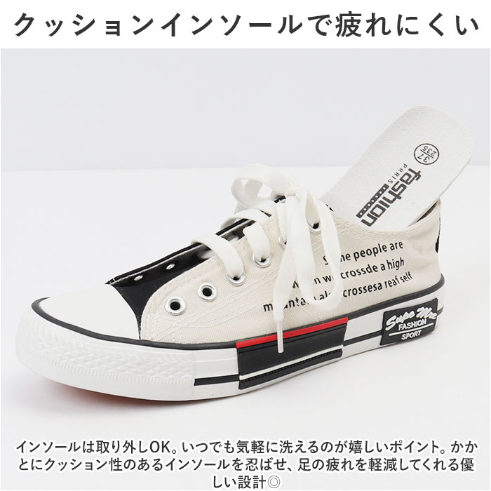 | 商品説明 | カジュアルながらもこだわりのあるデザイン☆「レディース ローカットスニーカー」が登場。【こだわりのあるデザイン】キャンバス生地のローカットスニーカーにバイカラーの生地を使用。さらにロゴデザインをプラスしたこだわりのあるデザイン。【クッションインソールで疲れにくい】インソールは取り外しOK。いつでも気軽に洗えるのが嬉しいポイント。かかとにクッション性のあるインソールを忍ばせ、足の疲れを軽減してくれる優しい設計◎【カジュアルスタイルにピッタリ】ボーイズライクなファッションや、気取らないカジュアルスタイルにしっくりくる、飽きのこないオーソドックスなデザイン。 |