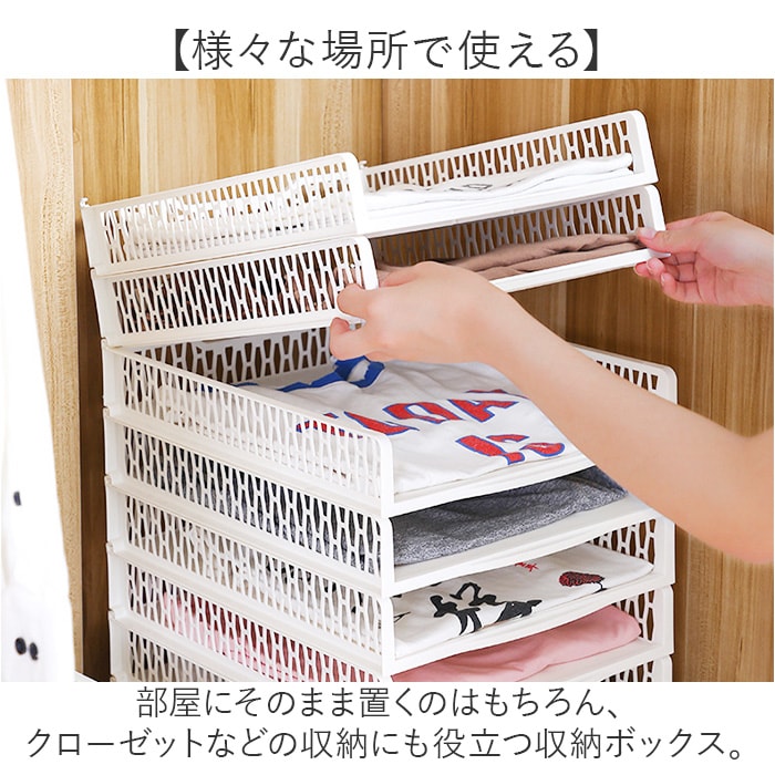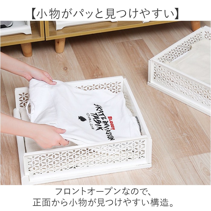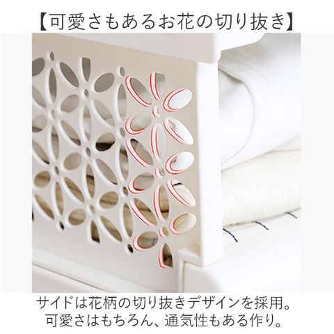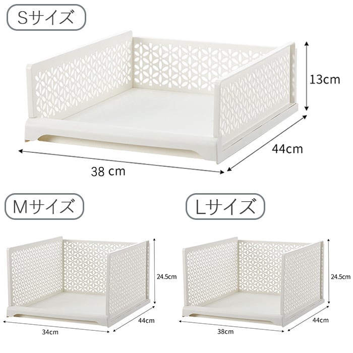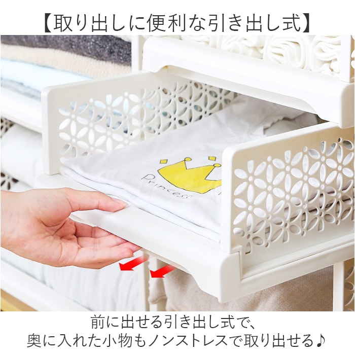 | 商品説明 | 【様々な場所で使える】部屋にそのまま置くのはもちろん、クローゼットなどの収納にも役立つ収納ボックス。【自由自在に使える】・3サイズ展開と積み重ねが可能♪自在に組み合わせてお部屋や収納をすっきり整理整頓!【取り出しに便利な引き出し式】前に出せる引き出し式で、奥に入れた小物もノンストレスで取り出せる♪【小物がパッと見つけやすい】フロントオープンなので、正面から小物が見つけやすい構造。【可愛さもあるお花の切り抜き】サイドは花柄の切り抜きデザインを採用。可愛さはもちろん、通気性もある作り。【使わない時はコンパクトに】コンパクトに折りたためるので、使わない時の収納場所や引っ越しの時に困らない!【どんなインテリアにも合う】シンプルなホワイトカラーで、インテリアの雰囲気を崩さず使えるのもポイント☆【マルチに使える】衣類やタオルはもちろん、お子さまのおもちゃ入れやキッチンの食材や雑貨置き場にも最適 |