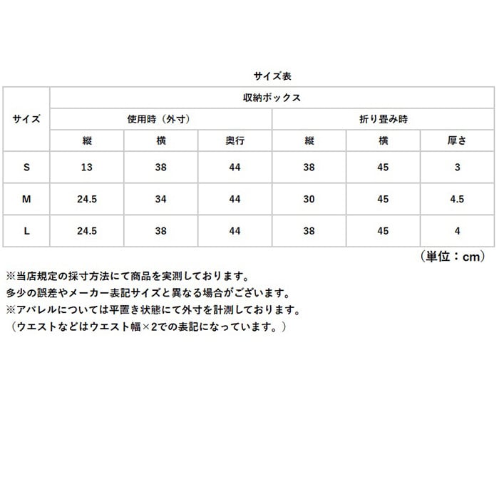 | サイズ | [収納ボックス] ・Sサイズ ・Mサイズ ・Lサイズ ※サイズについて詳細は、商品画像の中にあるサイズ表をご覧くださいませ。 |