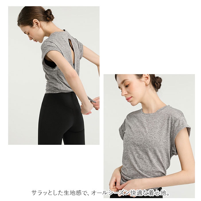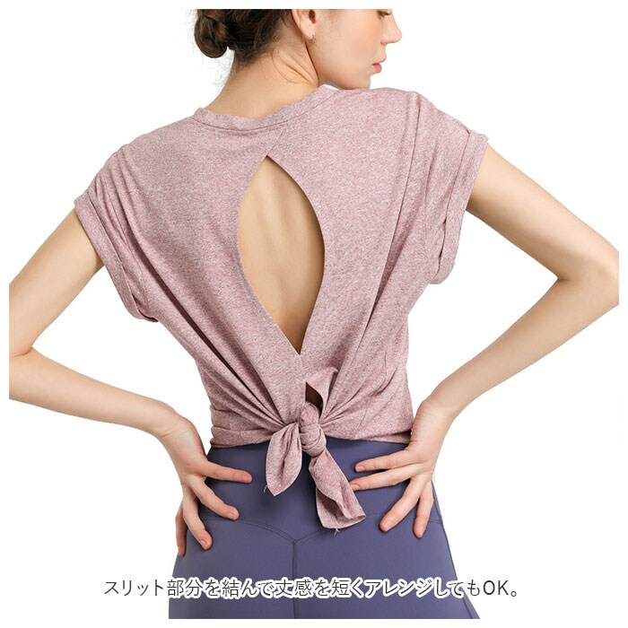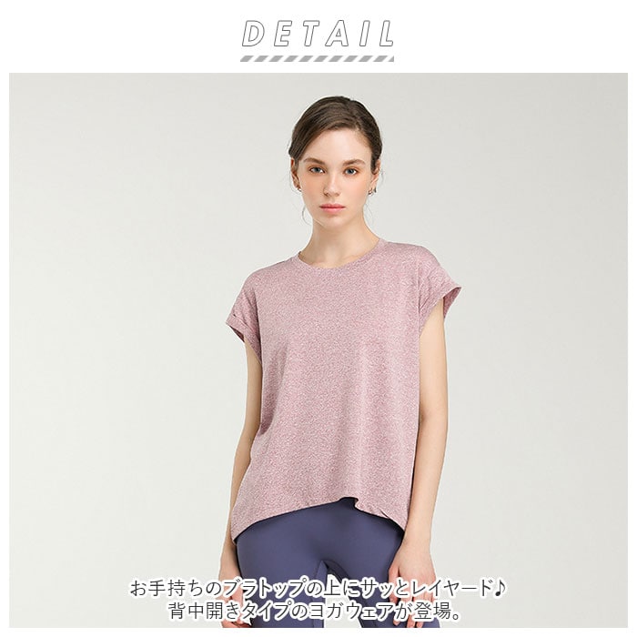 | 商品説明 | お手持ちのブラトップの上にサッとレイヤード♪背中開きタイプのヨガウェアが登場。胸元が見えにくい、浅めのクルーネックタイプ。使いやすい袖付きトップス。サラッとした生地感で、オールシーズン快適な着心地。程よく伸縮性があり、身体の動きにフィット。大胆に開いたバッグデザインが、背中をキレイ魅せ!前と後ろで丈感に差を付けており、後ろはスリットを入れた長めの設計。スリット部分を結んで丈感を短くアレンジしてもOK。ヨガはもちろん、ジムでのトレーニングやダンスレッスンでも活躍! |