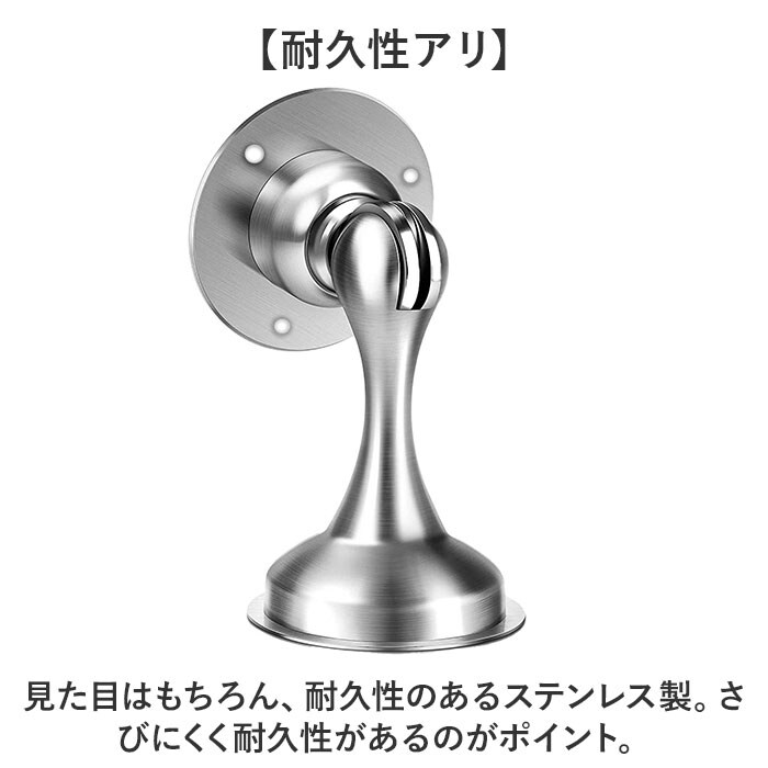 | 商品説明 | 【マグネットで吸着】マグネットで簡単にドアを開けっぱなしにできるドアストッパーが発売。【スタイリッシュなデザイン】シャープさが際立つスタイリッシュなシルエット!ご自宅はもちろんお店やオフィスなどにも。【マグネットで開いたまま】マグネットで吸着してドアが閉じるのを防いでくれる!作業や空気の入れ替え時に便利◎【耐久性アリ】見た目はもちろん、耐久性のあるステンレス製。さびにくく耐久性があるのがポイント。【賃貸でも使える】留め具はネジと粘着テープで可能。粘着テープで使用すれば穴を開けずに設置! |