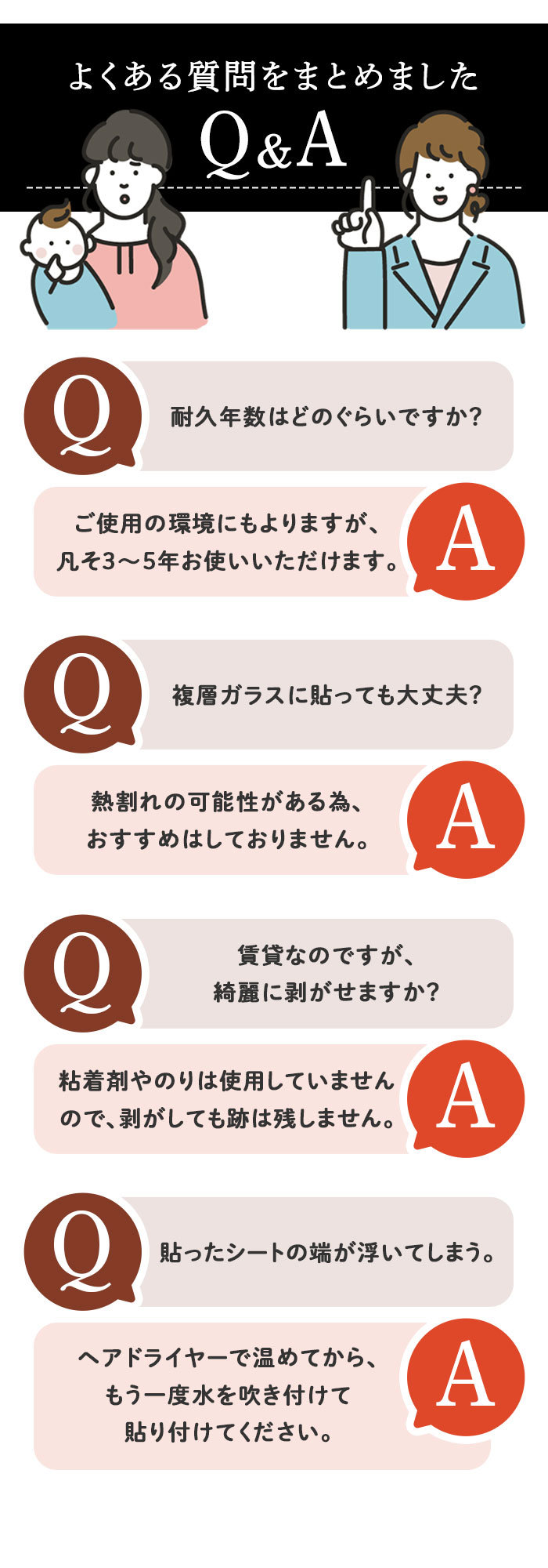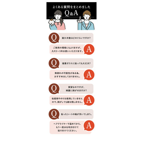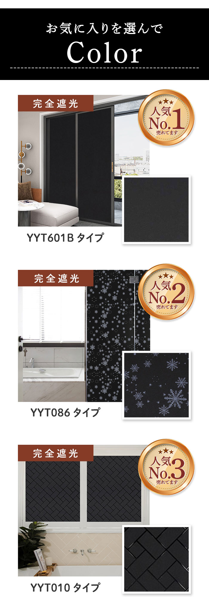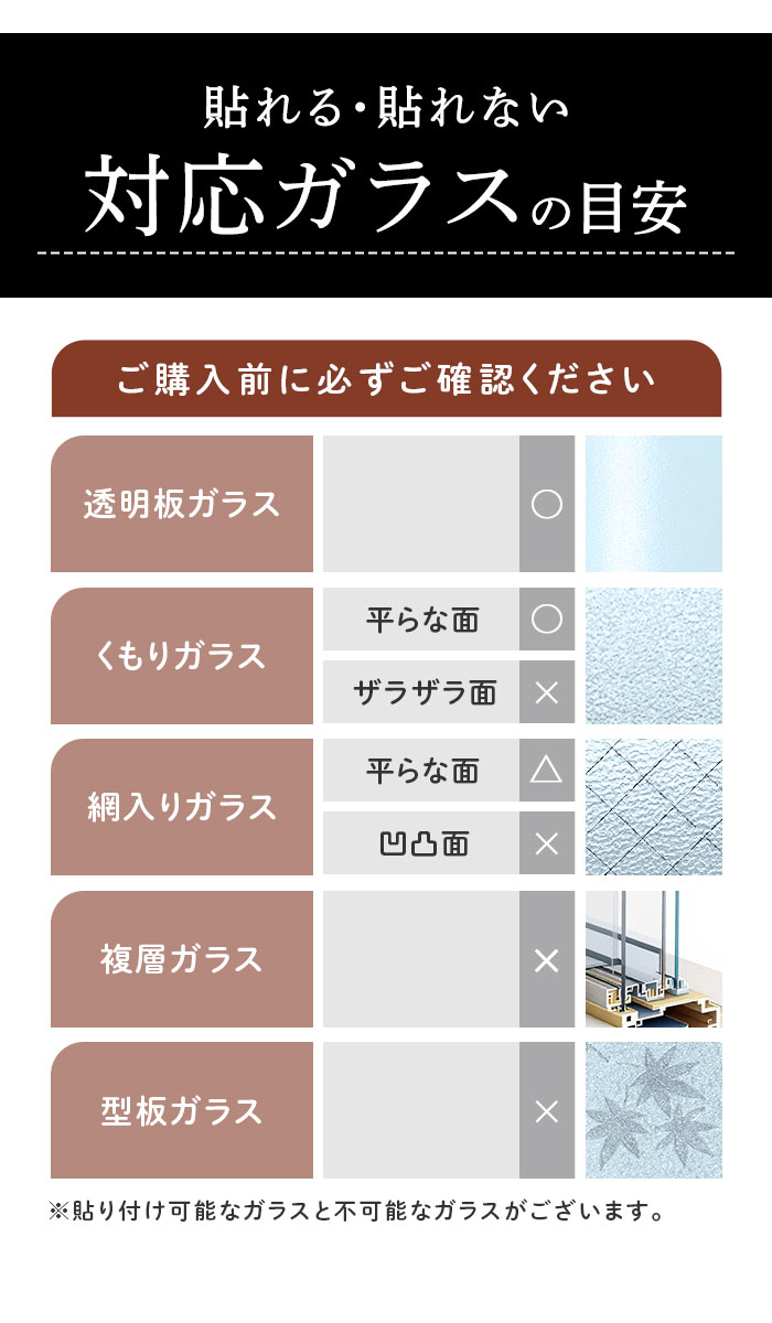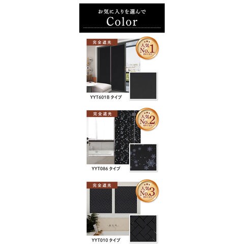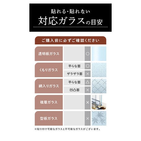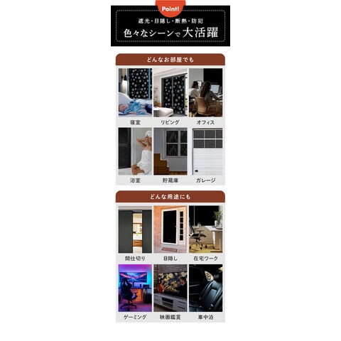 | 商品説明 | 窓ガラスにピタッと貼り付けて、100%遮光!快適な睡眠とプライバシーを守りたい方に最適な「遮光シート」(60cmタイプ)が新登場。昼間の太陽の光はもちろん、夜間の屋外からの光漏れからも、お部屋を24時間保護。夜勤でお仕事をされている方や、お昼寝する乳幼児の安眠確保に。光と同時に紫外線もカットするため、日焼けが気になる方や、家具や内装の色褪せ予防にも効果的。黒色不透明のシートが建物外部からの視線を遮断!おうち時間とプライバシーを大切にする方にもオススメ。貼ってはがせる静電気吸着タイプのシートで、窓ガラスの表面にピタッ!特別なノウハウや工具なしに、どなたでも貼り付け可能!(※表面が平らな、透明平面ガラスにご使用ください。擦りガラス、型板ガラス、網入りガラスなどにはご使用になれません。)汚れや水滴がサッと拭き取れるPVC(ポリ塩化ビニル)素材だから、お手入れも簡単、手間いらず。表面にチョークで文字やイラストを描くことができ、ご家族の伝言板やショップのデコレーションにも大活躍。掃き出し窓や半間サイズの窓で貼りつけ作業がスムーズにできる、60cm×2mの大きめサイズ。シンプルな「無地つや消し」(YYT601Bタイプ)、幻想的な「雪の結晶」(YYT086タイプ)、スタイリッシュな「斜めレンガ調」(YYT010タイプ)など、選べるパターンバリエーション。 |