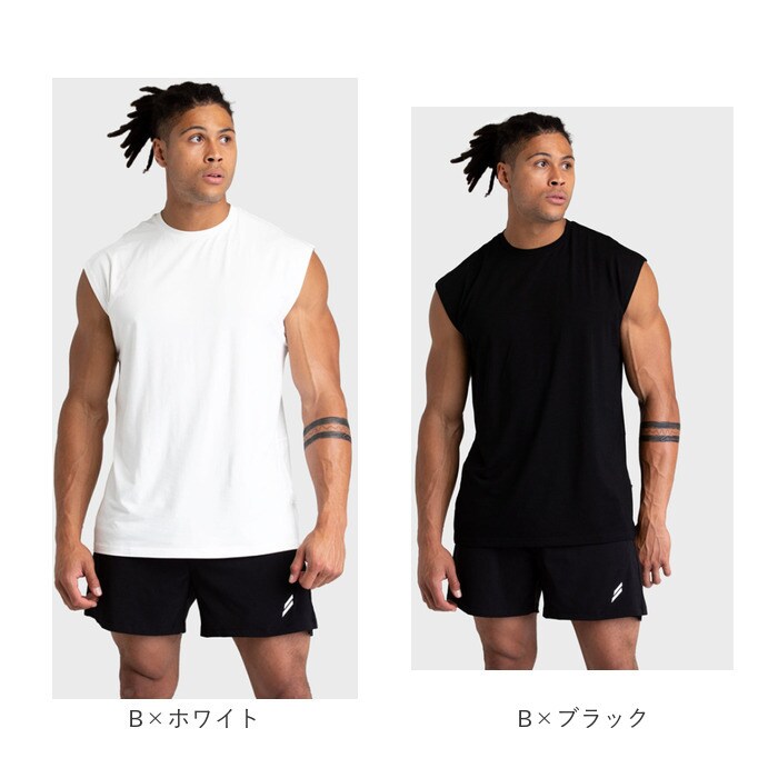 タンクトップ ジムウェア メンズ【B×ホワイト】【Lサイズ】