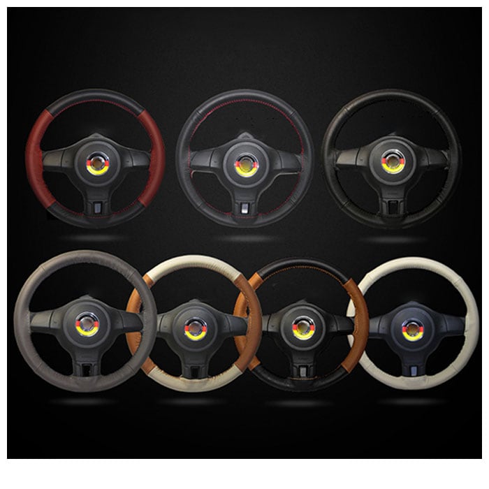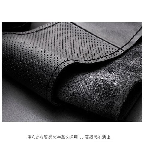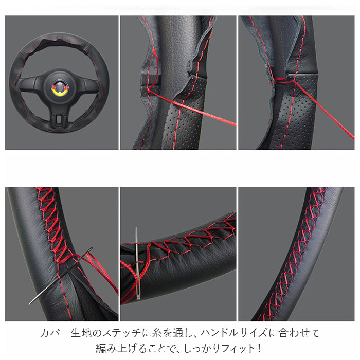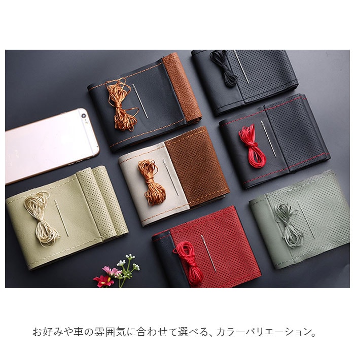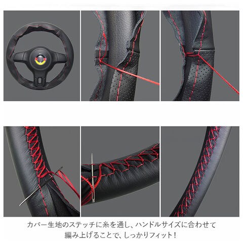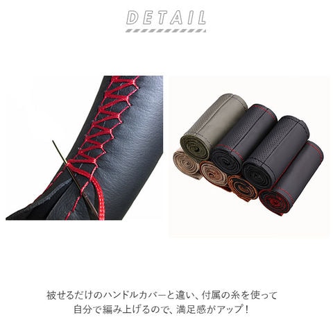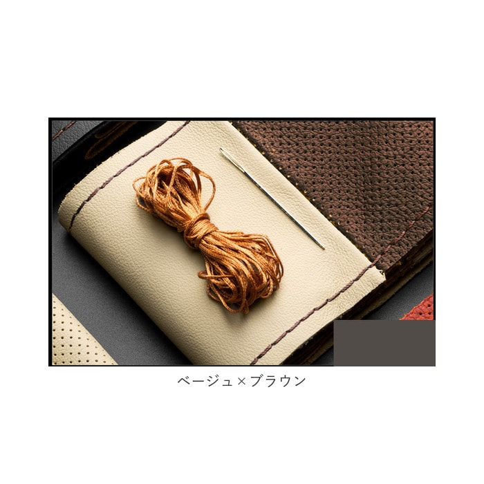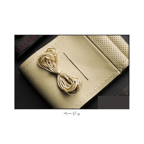 | 商品説明 | 愛車のハンドルカバーをカンタンに手作りできる♪手縫い仕様のハンドルカバー。被せるだけのハンドルカバーと違い、付属の糸を使って自分で編み上げるので、満足感がアップ!滑らかな質感の牛革を採用し、高級感を演出。直径約37cm~38cmのハンドルに対応。カバー生地のステッチに糸を通し、ハンドルサイズに合わせて編み上げることで、しっかりフィット!パンチング加工が施されており、滑りにくいのもポイント。お好みや車の雰囲気に合わせて選べる、カラーバリエーション。・【セット内容】カバー生地、針×1、糸×1 |