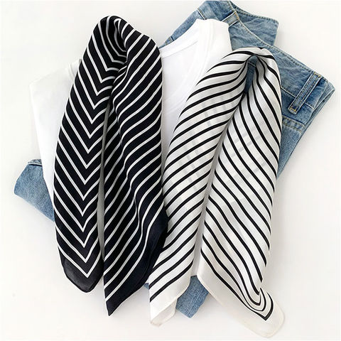 スカーフ シルク100%【ストライプブラック】