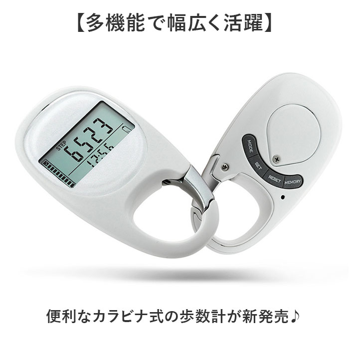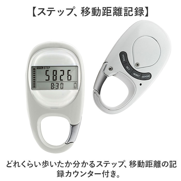 | 商品説明 | 【多機能で幅広く活躍】便利なカラビナ式の歩数計が新発売♪【カバンやベルトループに】取り付けに便利なカラビナ付き!カバンの持ち手やベルトループに掛けて持ち運びらくらく◎【ポケットに入るコンパクトさ】洋服のポケットに入るコンパクトさも嬉しいポイント。【見やすいデジタル画面】シンプルなディスプレイ表示で情報が見やすいデジタル画面。【時計機能】・12or24時間形式で表示可能な時計機能。【消費カロリー】一日の消費カロリーを最大で9,999.9Kcalまで記録。【ステップ、移動距離記録】どれくらい歩いたか分かるステップ、移動距離の記録カウンター付き。【最大7日間の記録機能】最大で7日分のアクティビティが自動で記録できるメモリを搭載。※1【自動OFF機能】・30秒間動きが検知されないと自動でスリープモードに変わる。【スマホやアプリいらず】スマホやアプリの設定がいらないのでお子さまや高齢者の方にも使いやすい。【繰り返し使える電池式】電池で繰り返し使えるので充電の手間がないのもポイント。※2【電池交換の時期がわかる】画面右下のバッテリーマークで電池の残量がわかる仕組み。交換の時期がわかりやすい。【注意点】※1 記録はAM12時でリセットされます。※2 使用電池:CR-2032×1個 モニター用電池付属×1個 |