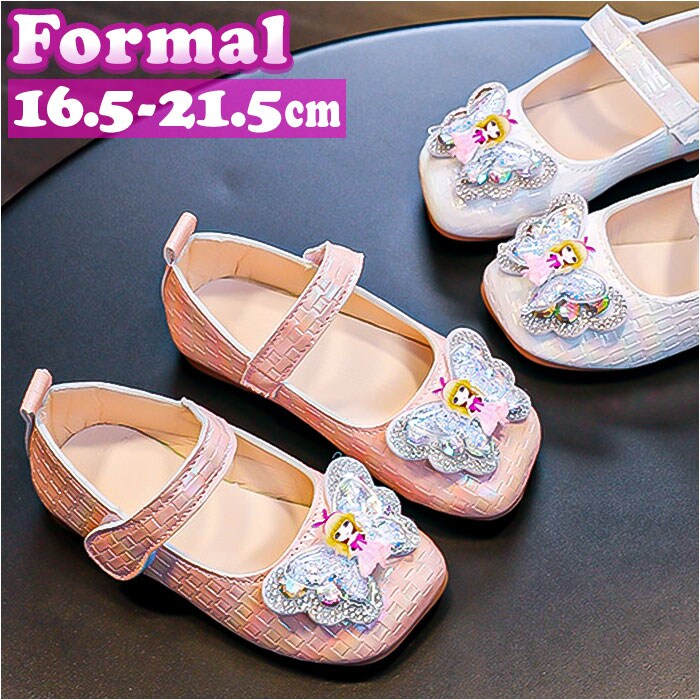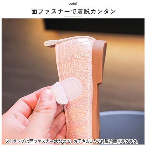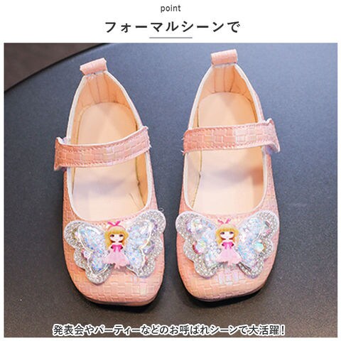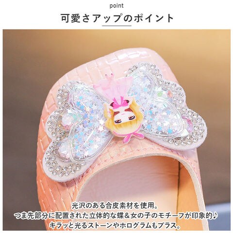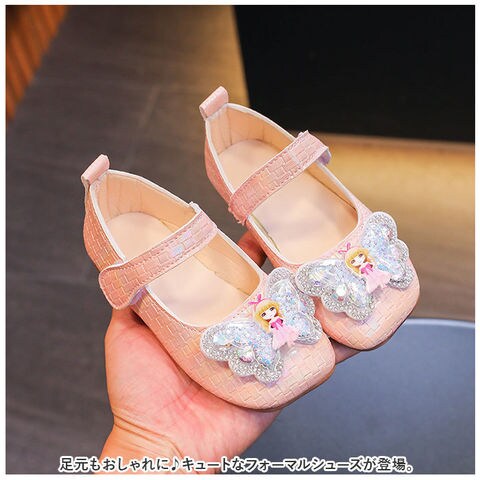 | 商品説明 | 足元もおしゃれに♪キュートなフォーマルシューズが登場。【可愛さアップのポイント】光沢のある合皮素材を使用。つま先部分に配置された立体的な蝶&女の子のモチーフが印象的♪キラッと光るストーンやホログラムもプラス。【面ファスナーで着脱カンタン】ストラップは面ファスナー式なので、お子さま1人でも脱ぎ履きラクラク。【歩きやすさが向上】屈曲性があり、つま先にかけてやや上を向いた形状。つまづきにくく、蹴り上げやすい!【安定感のあるソール】前後の差を抑えたほぼフラットなソール。滑りにくい素材で、濡れた路面でも安心。【フォーマルシーンで】発表会やパーティーなどのお呼ばれシーンで大活躍! |