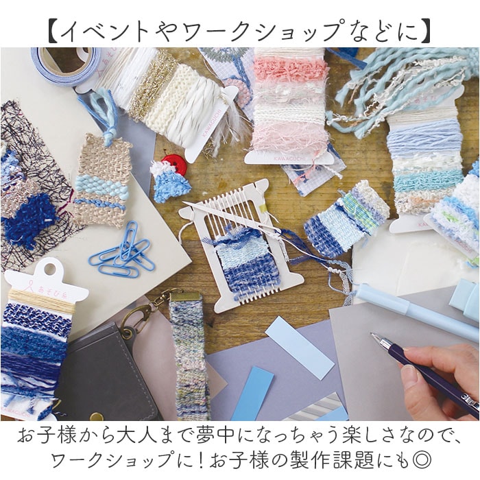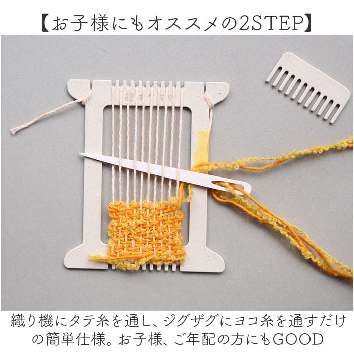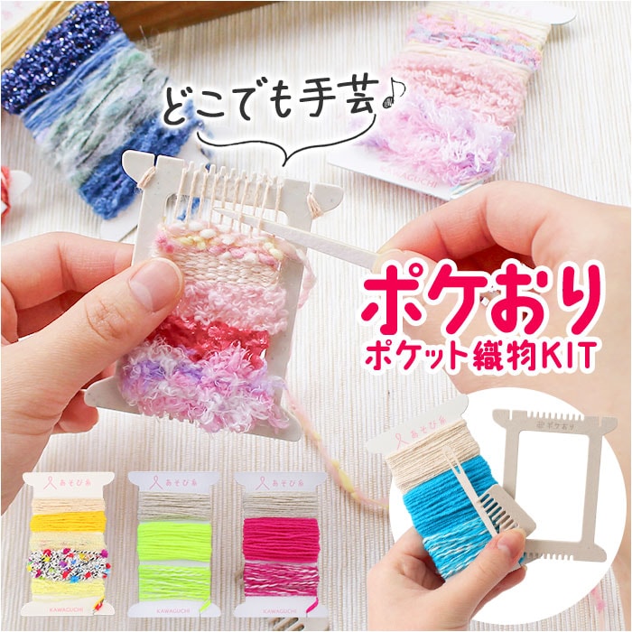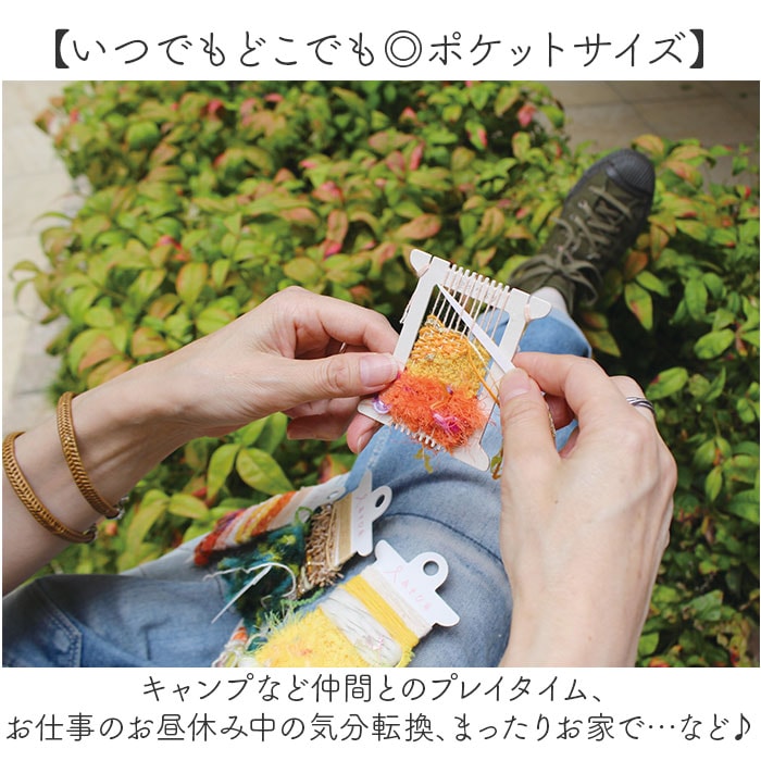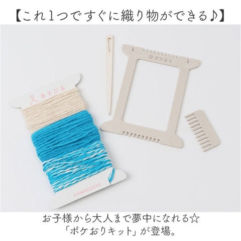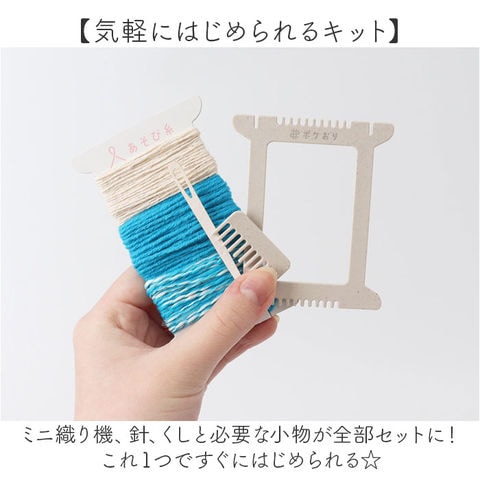 | 商品説明 | 【これ1つですぐに織り物ができる♪】お子様から大人まで夢中になれる☆「ポケおりキット」が登場。【気軽にはじめられるキット】ミニ織り機、針、くしと必要な小物が全部セットに!これ1つですぐにはじめられる☆【いつでもどこでも◎ポケットサイズ】キャンプなど仲間とのプレイタイム、お仕事のお昼休み中の気分転換、まったりお家で…など♪【お子様にもオススメの2STEP】織り機にタテ糸を通し、ジグザグにヨコ糸を通すだけの簡単仕様。お子様、ご年配の方にもGOOD【おしゃれな遊び糸がポイント】それぞれ同系色でそろえた遊び糸が、どれも可愛い!お好みの色味をチョイスして☆※同梱のあそび糸は色アソートになっており糸の種類が異なるケースがあります。色の系統は同じです。どんな糸が届くのかは、お楽しみです。【いろんな物を作れちゃう!】かわいいアクセサリーや小物、Tシャツや靴下のワンポイント、インテリア雑貨など、幅広くOK。【イベントやワークショップなどに】お子様から大人まで夢中になっちゃう楽しさなので、ワークショップに!お子様の製作課題にも◎【環境にも配慮】織り機とくしに、ホタテの貝殻を51%使用。針も可燃ごみとして廃棄でき、地球に優しい♪ |