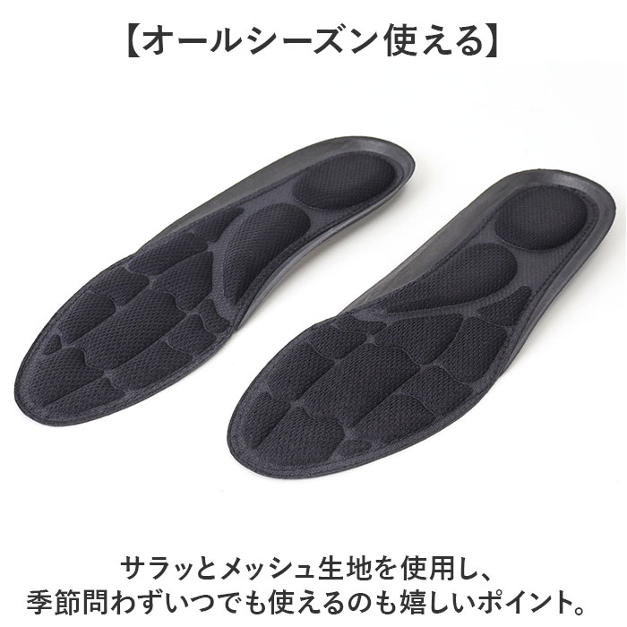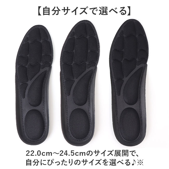 | 商品説明 | 【沢山歩くママさんにも最適】足の疲れに悩むお母さんのために開発された「3Dふかふかインソール」が新発売。【足裏へ伝わる衝撃を吸収】クッション素材を使用したインソールで足裏から伝わる衝撃を軽減◎【足元に優しくフィット】クッション素材を使用したフットベッドがフィットし長時間の使用でも足に優しい◎【アーチにもアプローチ】土踏まずにもクッションを配置。足の自然なアーチをサポートし安定した歩行に。【超衝撃吸収ヒールクッション】ハニカム状のメッシュゲルが踵を落としたときの関節まで伝わる衝撃を緩和。【自分サイズで選べる】・22.0cm~24.5cmのサイズ展開で、自分にぴったりのサイズを選べる♪※(※)Sサイズ:22.0cm~22.5cm・Mサイズ:23.0cm~23.5cm・Lサイズ:24.0cm~24.5cm【オールシーズン使える】サラッとメッシュ生地を使用し、季節問わずいつでも使えるのも嬉しいポイント。 |