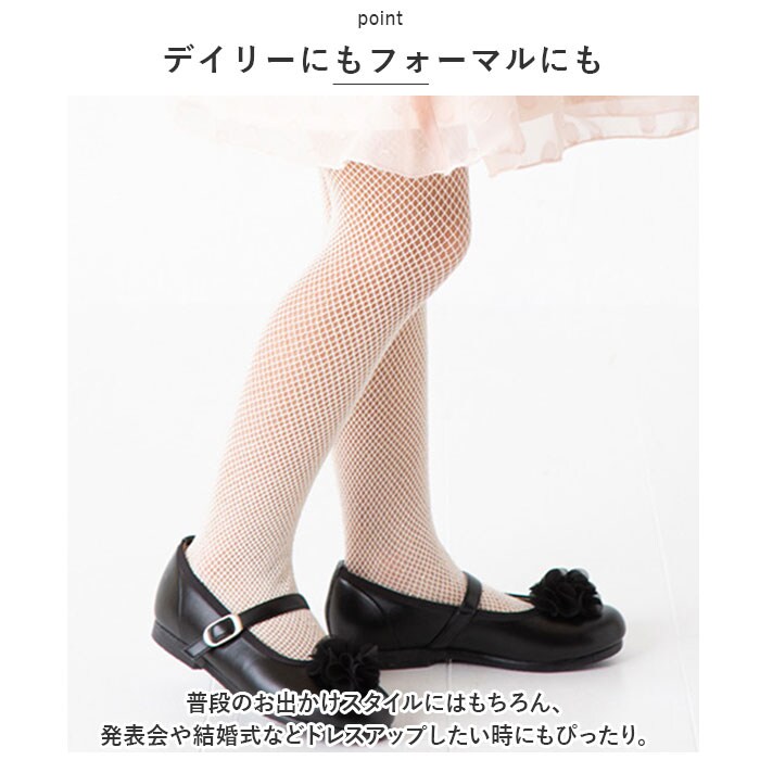 | 商品説明 | いつものコーデを格上げ♪POMPKINSのキッズ用網タイツが新登場。【シンプルな編み柄タイツ】細かなメッシュ編みで脚をキレイ魅せ。足元もおしゃれにコーディネート♪【デイリーにもフォーマルにも】普段のお出かけスタイルにはもちろん、発表会や結婚式などドレスアップしたい時にもぴったり。【ストレスフリーな履き心地】しっかり伸びるナイロン混紡素材で、着脱ラクチン。しっかりとした50デニール仕様ながら、締めつけることなく快適な着用感!【色違いで揃えてもOK】コーデに合わせて選べる3カラー。全カラー揃えれば、コーデの幅も広がること間違いなし☆ |