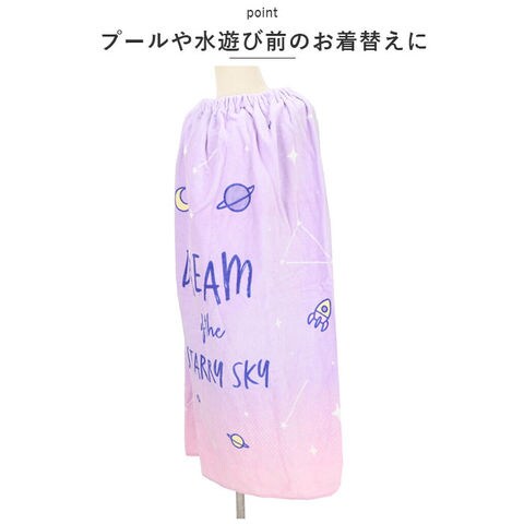 | 商品説明 | プールや海水浴のお着換えがとってもスムーズ!ユニークな絵柄が楽しい、キッズ向けプール用マキタオル(80cmタイプ)が新登場。【安心の綿100%素材】タオルの表面は肌触りの滑らかなコットン100%のシャーリング加工生地、裏地はふわっとパイル生地仕上げ。ゴワゴワしないから、お着替えタイムが快適。【プールや水遊び前のお着替えに】巻きタオルでくるっと身体を包みこんだら、タオルの中でサッとお着替え♪すっぽりと身体が隠れて、ひとりでのお着替えも慌てず安心!【ウエストゴムがピタッとフィット】ウエストはゴムタイプ&2段階に調節できるスナップボタンで、身体にぴったりフィット!タオルがストンと落ちてしまう心配ナシ!【きちんと閉まって安心】サイドも3ヶ所のスナップボタンできちんと留めることができるので、更衣室や教室でお友だちと一緒のお着換えも恥ずかしくない♪【バスタオルにしてもOK!】ほどよい吸水力のあるコットン素材で、お着換えの後は身体を拭くバスタオルとしてはもちろん、ヘアドライ用にも最適!【ご家庭で簡単お洗濯!】洗濯ネットに入れて優しくお洗濯すれば、毎日のお手入れもラクラク。(※色落ちや毛羽落ちしますので、他のものと別にお洗濯してください。)【壁掛けループ&ネームタグ付き】ウエストの端に、壁掛けフックに掛けられるループ付き。裾にはネームタグも付いているので、お友だちとお揃いの柄でも大丈夫。【夏リゾートが楽しくなるデザイン】お気に入りの柄のタオルで、スタイリッシュにお着替え完了!お洒落キッズも大満足のバラエティに富んだカラーラインナップ。 |