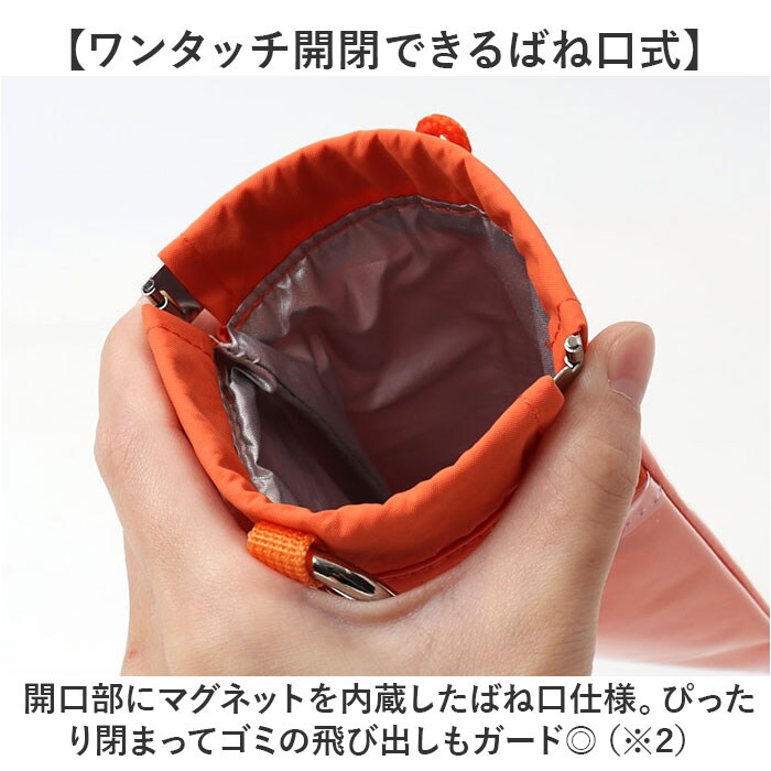 | 商品説明 | 【外出時のゴミはそのまま持ち帰り】外出先でのちょっとしたゴミを入れることができる、携帯用ゴミ箱!「POY 推し活」。【とりあえずポイッとできて便利】外出先で出てしまう、お菓子の包み紙やウェットティッシュなどのゴミを”ポーイ”っとIN♪【推し活アイテムとして仲間入り】前後にクリアポケットを装備!お気に入りの推しグッズを入れて、アピールできちゃう☆(※1)オープンポケットのため、中身が落ちやすいのでご注意ください。【コンパクトな手のひらサイズ】手のひらに乗るくらいのサイズ感。マチがなく、バッグの中でもかさばらないフラット形状。【ワンタッチ開閉できるばね口式】開口部にマグネットを内蔵したばね口仕様。ぴったり閉まってゴミの飛び出しもガード◎(※2)口元のループとカラビナを持って、開閉することも可能です。【繰り返し使えてお手入れもラクラク】汚れやすい内側は引き出して水洗いしたり、除菌シート等で拭き取り。何度でも使えてエコ!【エチケットアイテムを収納】背面のポケットには、ウェットティッシュやポケットティッシュを。まとめておけば忘れ物防止。【カラビナで簡単取り付けOK】バッグやキーリングに取り付けできるカラビナ付き。ミニバッグなどでも安心。【色んなシーンで大活躍間違いなし】普段のお出かけ、アウトドアシーンに。お子さまとのお出かけ時は、ベビーカーにぶら下げて♪【選ぶのも楽しいラインナップ】鮮やかな色合いのワンカラー仕上げ。推しカラーやお好みのカラーをチョイスして気分も明るく☆【ポケット仕様】前面:クリアポケット×1背面:クリアポケット×1、オープンポケット×1 |