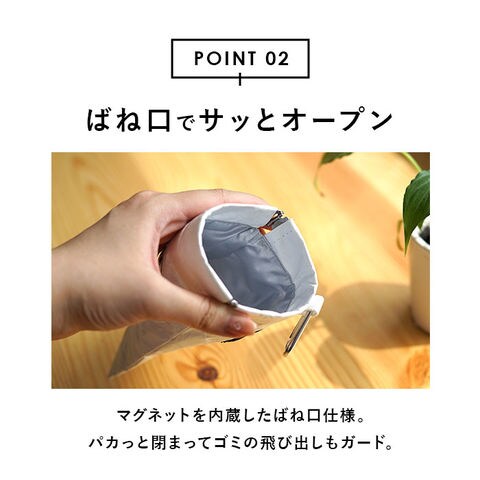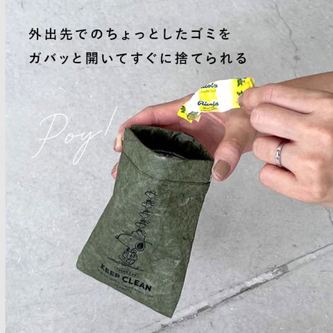 | 商品説明 | 【自分で出したゴミは自分で持ち帰り】外出先ででたちょっとしたゴミは、SNOOPYと一緒にきちんと持ち帰ろう!「POY TRASH PORCH」【POY(ポーイ)って何??】お菓子の包み紙やティッシュなど、小さなゴミを“ポーイ”と入れておくのに便利な携帯ミニゴミ箱。【とりあえず“ポーイ”の新習慣!】外出先で捨てる場所に困ったら、ポーチの中にポーイ!お家に帰ったら、中のゴミを捨てるだけ!【邪魔にならない手のひらサイズ】マチのない薄型フォルムとコンパクトな手のひらサイズで、カバンの片隅に入れて楽ラク持ち運び。【ばね口で、開け閉めスムーズ】ポーチの口元は、片手で簡単に開いてパタンッと閉じるばね口仕様だから、ゴミが飛び出さない♪【サッと拭けて、お手入れ楽ちん】汚れやすいポーチ内側は、アルコールシートでサッと拭けるシルバーコーティング生地を採用。【小物がちょこんと入るポケット付き】ポーチの背面に、ポケットティッシュやお手拭き用のウェットティッシュが入るポケット付き。【カラビナで肌身離さず持ち歩き】付属のカラビナで、普段使いのバッグのハンドルやDカンに取り付ければ、携帯に便利。【さまざまなシーンで大活躍】お子様とのお出掛けにはベビーカーにぶら下げて。ゴミ箱のないアウトドアシーンにもオススメ。【世界中で愛されるデザイン】すれ違う人が思わず振り返る!紙袋のようなクラフト素材にPEANUTSの絵柄を可愛らしくプリント。 |