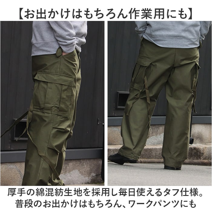 | 商品説明 | 【本格的なミリタリー仕様】米軍M-65フィールドパンツを忠実に再現♪機能性もあるメンズカーゴパンツ。【ポケットがアクセント】沢山の大きなポケットが特徴的なカーゴパンツ。コーデのアクセントや実用性もアリ◎【お出かけはもちろん作業用にも】厚手の綿混紡生地を採用し毎日使えるタフ仕様。普段のお出かけはもちろん、ワークパンツにも【こだわりのディテール】フラップ付きのポケット、コード、サイドのアジャスターなどこだわりのディテールにも注目。【貴重品を入れても安心】フラップポケットはすべて留め具付きなので、貴重品を入れても飛び出さず安心。【裾を絞れるコード付き】裾口を絞ることですっきりとしたシルエットに。ブーツを履くときももたつかずスムーズに完了【より自分サイズに調節】ウエストサイドのアジャスターで、より自分サイズに調節できるのも嬉しいポイント。【シンプルなワンカラー】年代問わず使えるシンプルなワンカラー。様々なスタイルに活躍できるのもGOOD。【様々なコーデに合う】ベーシックなカラーバリエーションでトップスを選ばず着回し力抜群!【ミリタリーが好きな方に】本格的な作りでミリタリーが好きな方にもオススメなアイテム。 |
