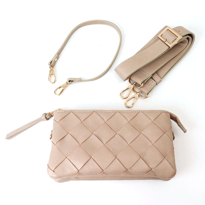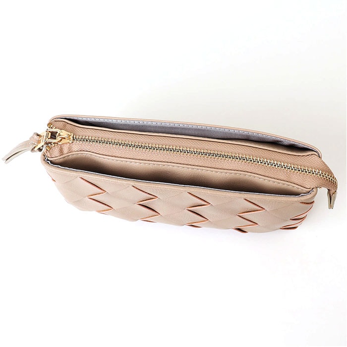 | 商品説明 | 【嬉しいお財布機能付き】編み込みデザインが大人可愛い♪ウォレットバッグがPisoraroから新発売。【編み込みデザイン】フロントは合皮を編み込み、シンプルながら大人可愛い仕上がりに◎【ミニマル女子におススメ♪】マストな小物がすっきりまとまり、ちょっとそこまでのお出かけやお買い物、旅行などに最適☆【持ち方を選べる2way仕様】長いストラップを付けてポシェット、ストラップを取り外せば、クラッチバッグとして活躍【さらにハンドバッグにも】短いストラップに付け変えてハンドバッグとして使える♪シーンに合わせて持ち方をチョイス♪【たっぷり入る3ルーム構造】内側は3つのルームに分かれており、仕分けしやすく取り出しやすいつくり。【カードも現金もしっかり入る】カード収納や現金の収納にピッタリなファスナーポケットを配置し充実な財布機能も魅力。【取り出しに便利なアウトポケット】フロントと背面にスマホやパスケース等すぐに取り出したい小物入れに便利な外ポケット付き。【ポケット仕様】メインルーム前・・・カードポケット×6、オープンポケット×1メインルーム後・・・カードポケット×6、ファスナーポケット×1中央・・・カードポケット×4、中央仕切りファスナーポケット×1フロント・・・オープンポケット×1背面・・・オープンポケット×1 |