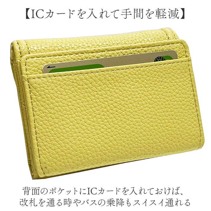 | 商品説明 | 【ミニマルで使えるサイズ感◎】コンパクトかつミニマルに使える♪Pisoraroから3つ折りミニウォレットが新発売。【シンプルで持ちやすい◎】本革のようなシボ感と柔らかさが特徴的な合皮素材。ワンカラー仕上げでシンプルな見た目◎【アクセントにロゴを配置】フロントのフラップに「Pisoraro」のロゴを配置し、さりげないアクセントに。【嬉しいミニサイズ】ミニバッグやアウターのポケットに収まるミニサイズ!サブウォレットで使うのもおススメ♪【ボックス型の小銭入れ】開くとボックスのように大きく広がり取りたい小銭を素早く見つけられる◎【小銭のみのやり取りもスムーズ】小銭入れは背面と独立されており、小銭のやり取りもスムーズに完了。【マグネット式のフラップ】フラップはマグネットを内蔵しワンタッチで簡単に開閉可能。【マストなカードをIN】身分証やクレカ、ポイントカードなど日ごろ使うカードを収納できるポケットを8つ搭載。【折らずに収納できるお札入れ】大きなお札もそのまま折らずに収納可能なお札入れも1つ搭載。【ちょっとした小物が入る】フラップの裏側にもフリーポケットがあり予備の小銭などちょっとした小物が入るサイズ。【ICカードを入れて手間を軽減】背面のポケットにICカードを入れておけば、改札を通る時やバスの乗降もスイスイ通れる【ポケット仕様】フラップ内側・・・お札入れ×1、カードポケット×8、フリーポケット×1背面・・・ボックス型小銭入れ×1、カードポケット×1 |