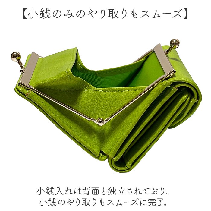 | 商品説明 | 【ミニマルで使えるサイズ感◎】コンパクトかつミニマルに使える♪Pisoraroからがま口タイプミニウォレットが新発売。【シンプルで持ちやすい◎】本革のようなシボ感が特徴的な合皮素材。ワンカラーにロゴをプラスしたシンプルデザイン。【女性らしい華やかさも】ロゴと金具部分にはゴールドカラーを採用し、女性らしい華やかさも魅力的。【嬉しいミニサイズ】ミニバッグやアウターのポケットに収まるミニサイズ!サブウォレットで使うのもおススメ♪【がま口&ボックス型の小銭入れ】開口部はがま口、開くとボックスのように大きく広がり取りたい小銭を素早く見つけられる◎【小銭のみのやり取りもスムーズ】小銭入れは背面と独立されており、小銭のやり取りもスムーズに完了。【マグネット式のフラップ】フラップはマグネットを内蔵しワンタッチで簡単に開閉可能。【マストなカードをIN】身分証やクレカ、ポイントカードなど日ごろ使うカードを収納できるポケットを7つ搭載。【折らずに収納できるお札入れ】大きなお札もそのまま折らずに収納可能なお札入れも1つ搭載。【ICカードを入れて手間を軽減】背面のポケットにICカードを入れておけば、改札を通る時やバスの乗降もスイスイ通れる【ポケット仕様】フラップ内側・・・お札入れ×1、カードポケット×7背面・・・ボックス型小銭入れ×1、カードポケット×1 |