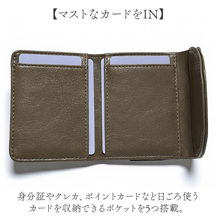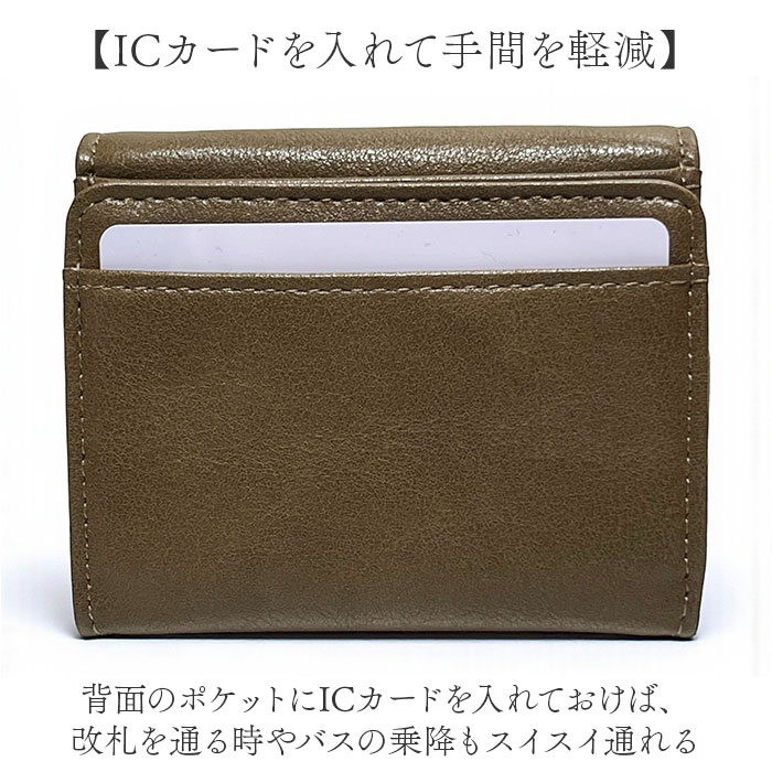 | 商品説明 | 【ミニマルで使えるサイズ感◎】コンパクトかつミニマルに使える♪Pisoraroからミニウォレットが新発売。【シンプルで持ちやすい◎】本革のような見た目の合皮素材を採用。ワンカラー仕上げでシンプルなデザイン◎【アクセントにロゴを配置】フロントにPisoraroのロゴを配置し、ゴールドカラーで華やかなアクセント【嬉しいミニサイズ】ミニバッグやアウターのポケットに収まるミニサイズ!サブウォレットで使うのもおススメ♪【ボックス型の小銭入れ】開くとボックスのように大きく広がり取りたい小銭を素早く見つけられる◎【小銭のみのやり取りもスムーズ】小銭入れは背面と独立されており、小銭のやり取りもスムーズに完了。【マグネット式のフラップ】フラップはマグネットを内蔵しワンタッチで簡単に開閉可能。【マストなカードをIN】身分証やクレカ、ポイントカードなど日ごろ使うカードを収納できるポケットを5つ搭載。【折らずに収納できるお札入れ】そのまま折らずに収納可能なお札入れも1つ搭載。【ちょっとした小物が入る】フラップの裏側にもフリーポケットがあり予備の小銭などちょっとした小物が入るサイズ。【ICカードを入れて手間を軽減】背面のポケットにICカードを入れておけば、改札を通る時やバスの乗降もスイスイ通れる【ポケット仕様】フラップ内側・・・お札入れ×1、カードポケット×5、フリーポケット×1背面・・・ボックス型小銭入れ×1、カードポケット×1 |