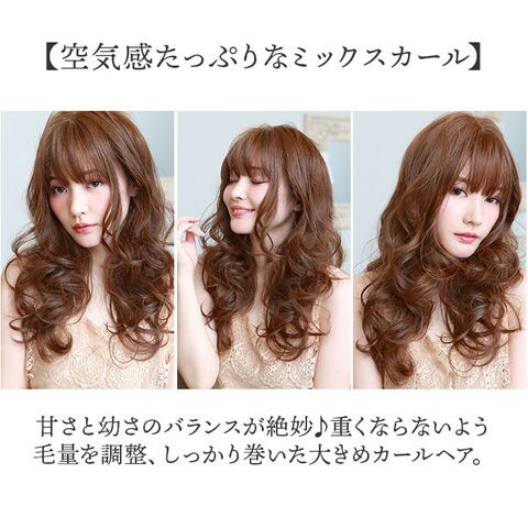 | 商品説明 | 【自毛を見せずにすっぽり被れる!】誰でも簡単装着!かつらタイプの「プリシラ オールウィッグ メープルカールロング」。【空気感たっぷりなミックスカール】甘さと幼さのバランスが絶妙♪重くならないよう毛量を調整、しっかり巻いた大きめカールヘア。【ナチュラルなぱっつん前髪】サイドの毛に沿うようカットされた前髪。フェイスラインがカバーされ、顔周りもスッキリ。【便利なオールウィッグネット付き】自毛をまとめるネットが1つ付属。ネットを使うことで、凹凸のないキレイなシルエットに。(※1)ネットはお手持ちのピンで固定してください。【手軽に使えて朝の支度もスマート】ネットで自毛をまとめたら、すっぽりとウィッグを被ってスタイリング!【快適なフルメッシュキャップ仕様】伸縮性&通気性に優れ、ムレにくく締め付けのない着用感。【顔まわりに心地よくフィット】こめかみ部分にワイヤーが入っているので、顔まわりに沿いやすく浮きにくいのがポイント。【自分サイズに固定!安定感ばっちり】襟足部分にサイズ調節可能なアジャスター付き。頭の形に合わせ、しっかり固定。【頭皮の質感を表現した自然なつむじ】より本物に近づけて仕上げた人工スキン部分。真上からの視線も気にせず安心。【人毛のような自然な質感と手触り】独自配合の国内メーカー製耐熱ファイバー100%。ツヤを軽減、くし通りも良く自毛に馴染む!(※2)凹凸加工を施した新ファイバーと、従来の耐熱ファイバーをミックスしています。【ヘアアイロンなどの使用も自由に】耐熱性があるので、コテやヘアアイロンの使用も可能。(※3)耐熱温度は180度、適正温度は130~150度です。【自宅でお手入れできて衛生的】絡みや汚れが気になったら手洗いできるから、いつも清潔をキープ。【ウィッグ初心者さんでも安心】着用ポイントやお手入れ方法が書かれた説明書付き。保管や持ち運びに便利なクリアポーチ入り。 |