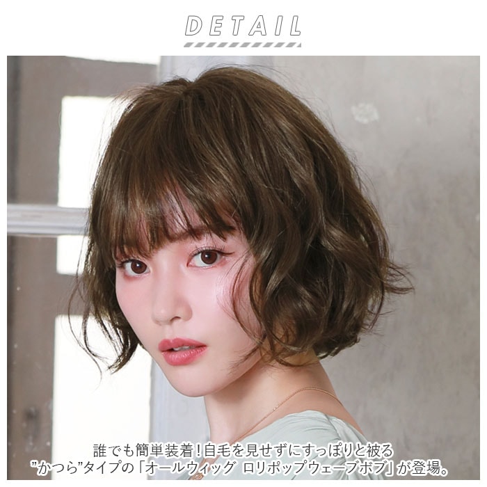 | 商品説明 | 誰でも簡単装着!自毛を見せずにすっぽりと被る”かつら”タイプの「オールウィッグ ロリポップウェーブボブ」が登場。自毛をまとめるオールウィッグネットが1つ付属。ネットを使うことで、凹凸のないキレイなシルエットに。(※ネットはお手持ちのピンで固定してください。)ネットで自毛をまとめたら、帽子のようにすっぽりとウィッグを被ってスタイリングするだけ!羽のように軽い、ふんわりゆるめのウェーブボブヘアが完成♪前髪も軽く巻いたような仕上がり。伸縮性&通気性に優れたフルメッシュキャップ仕様!こめかみ部分にワイヤーが入っているので、顔まわりに沿いやすく浮きにくいのがポイント。襟足部分にサイズ調節可能なアジャスター付き。しっかり固定することで頭にフィットし、安定感もばっちり。人工スキン部分は、より本物に近い頭皮の質感を表現!日本製の耐熱ファイバーを使用し、ツヤを軽減した人毛のような細さがウィッグに見えない自然なスタイルを演出!コテやヘアアイロンの使用もOK。(※耐熱温度は180度、適正温度は130~150度です。)絡みや汚れが気になったら手洗いできるから、いつも清潔。着用ポイントやお手入れ方法が書かれた説明書付き。ウィッグ初心者さんでも安心。保管や持ち運びに便利なクリアポーチが付属。くせ毛風のウェーブ感がとってもナチュラル!ランダムに散らして、アレンジするのもおすすめ。おしゃれを楽しむアイテムとしてはもちろん、医療用としても活躍。 |
