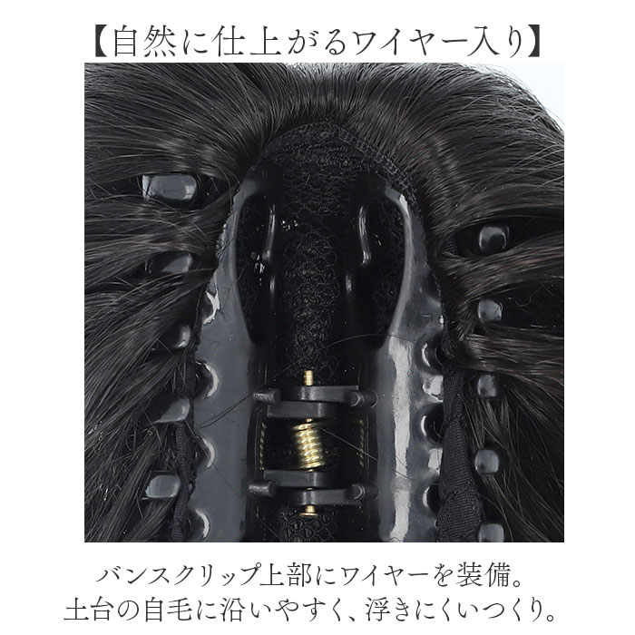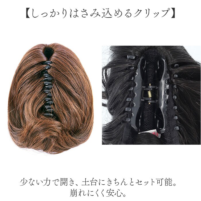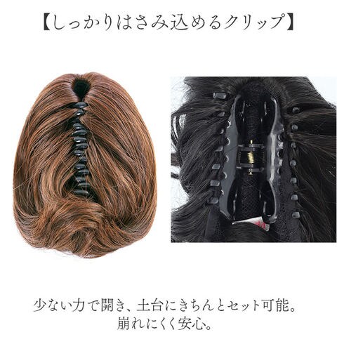 | 商品説明 | 【一瞬で手軽にスタイルチェンジ】クリップでワンタッチ!長さやボリュームをプラス。「プリシラ バンスウィッグワンカール」。【土台にはさんで固定!簡単装着】自毛で土台の団子を作り、バンスクリップをはさんで固定。手グシで整えたら完成◎【飽きのこないシンプルなワンカール】ころんとしたワンカールで、落ち着きのある大人の女性に。年代問わず使いやすいデザイン♪【しっかりはさみ込めるクリップ】少ない力で開き、土台にきちんとセット可能。崩れにくく安心。【自然に仕上がるワイヤー入り】バンスクリップ上部にワイヤーを装備。土台の自毛に沿いやすく、浮きにくいつくり。【人毛のようなナチュラル感を実現】国内メーカー製耐熱ファイバー100%。表面に凹凸加工を施すことで、ツヤを軽減。【ヘアアイロンなどの使用も自由に】耐熱性があるので、コテやヘアアイロンの使用も可能。(※)耐熱温度は180度、適正温度は130~150度です。【自宅でお手入れできて衛生的】絡みや汚れが気になったら手洗いできるから、いつも清潔をキープ。 |