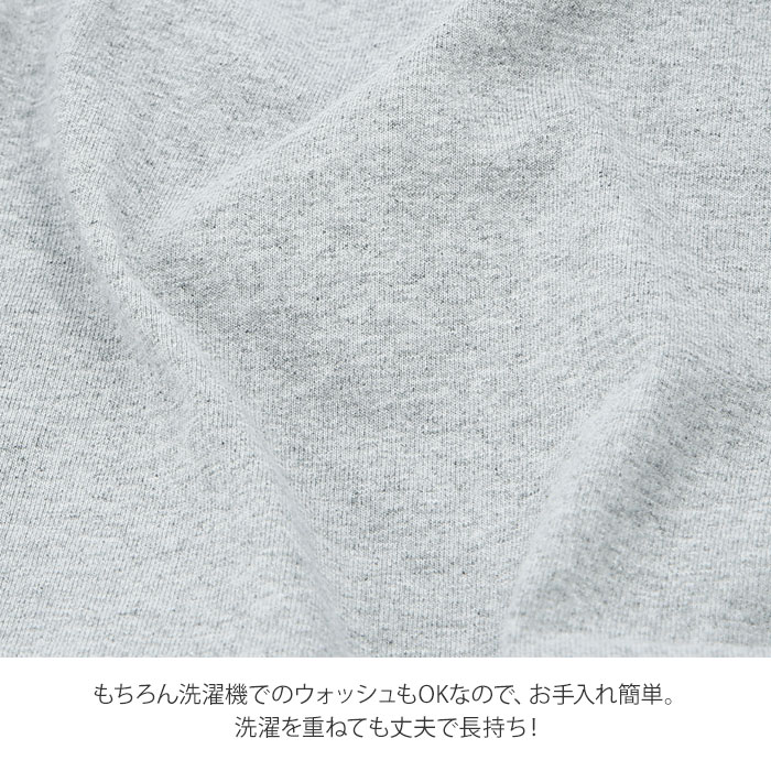 | 素材 | コットン100% ※カラーにより素材の組成が異なります。 [ヘザーグレー]コットン90%、ポリエステル10% [チャコール]コットン50%、ポリエステル50% |