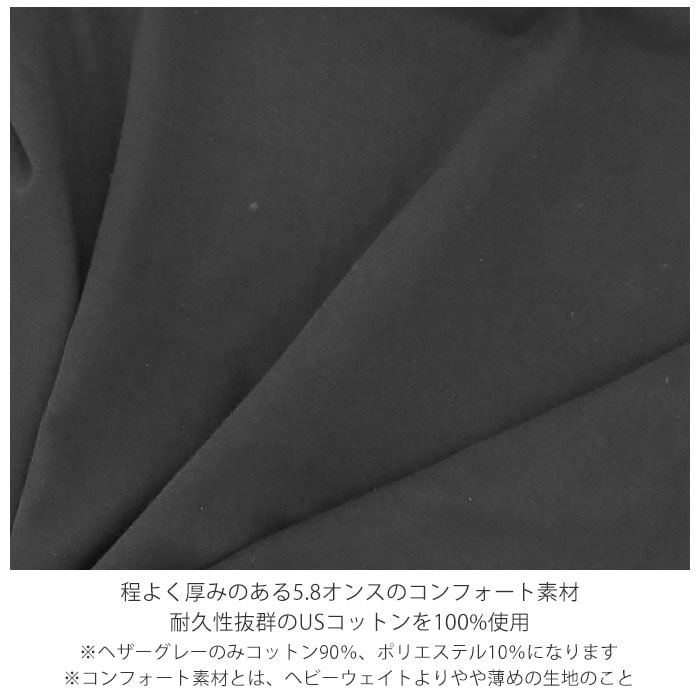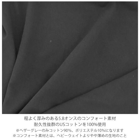 | 素材 | コットン100% ※カラーにより素材の組成が異なります。 ヘザーグレーのみ、コットン90%・ポリエステル10% |